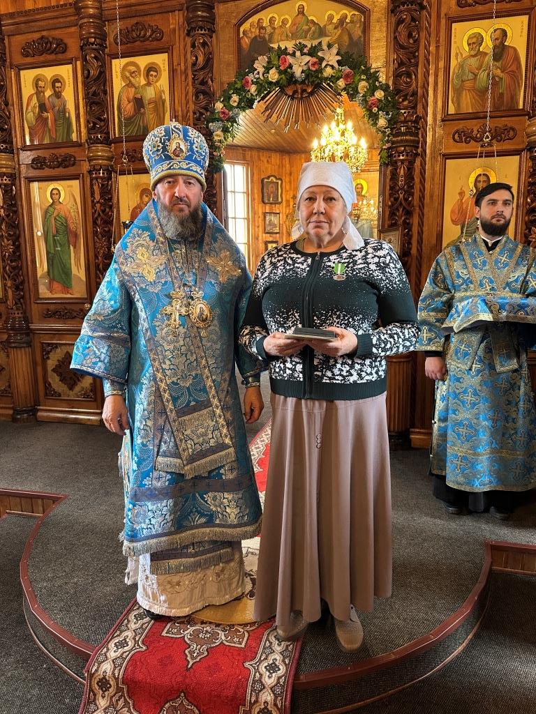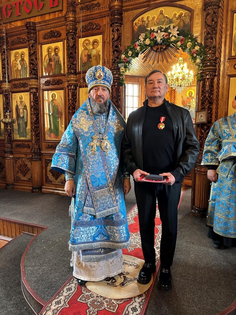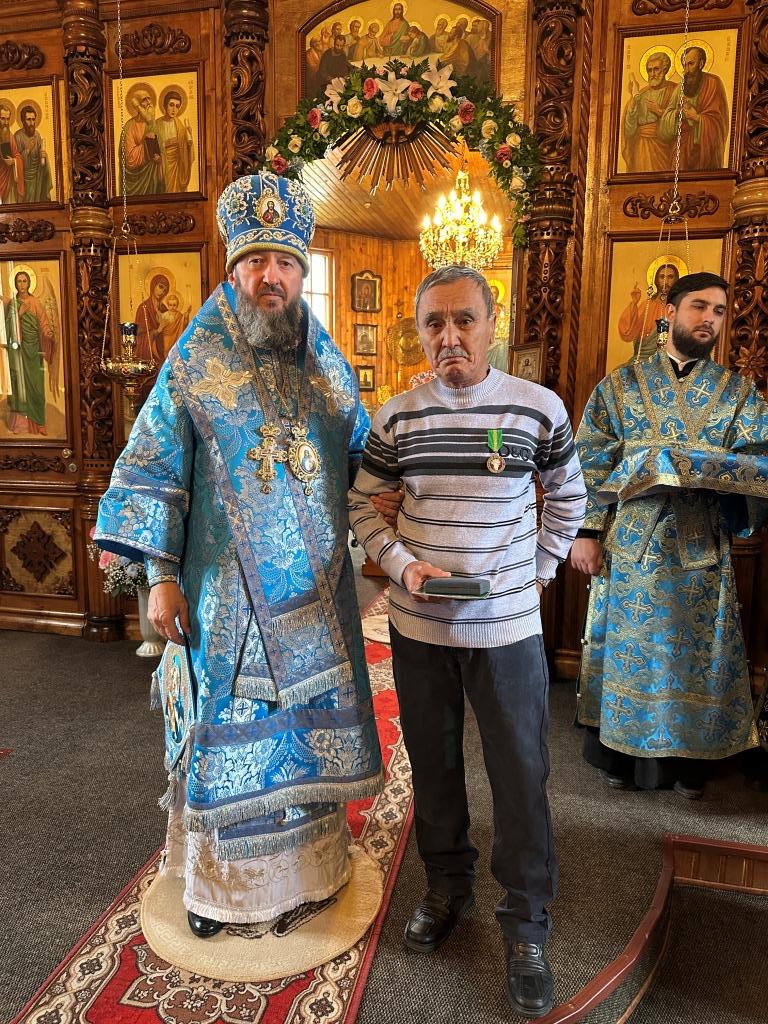В завершение богослужения Владыка архиепископ наградил ряд благодетелей и сотрудников Покровского храма орденами и медалями Митрополичьего округа Русской Православной Церкви в Республике Казахстан. Во внимание к усердным трудам на благо Покровского храма и в связи с 60-летием со дня рождения Александр Николаевич Данильченко был удостоен ордена святителя Луки, архиепископа Симферопольского и Крымского; во внимание к усердным трудам на благо Покровского храма и в связи с 55-летием со дня рождения Олег Владимирович Заворин был удостоен ордена святителя Луки, архиепископа Симферопольского и Крымского; во внимание к усердным трудам на благо Покровского храма и в связи с 55-летием со дня рождения Дмитрий Викторович Забиров был удостоен ордена святителя Софонии, архиепископа Туркестанского и Ташкентского, просветителя Семиречья; во внимание к усердным трудам на благо Покровского храма и в связи с 50-летием со дня рождения Анатолий Геннадьевич Назаров был удостоен ордена святителя Луки, архиепископа Симферопольского и Крымского. Иномжон Асланович Азамов был награжден медалью «За усердное служение»; Светлана Яковлевна Столярова, Татьяна Яковлевна Татаренко и Любовь Михайловна Кузнецова были награждены медалями преподобноисповедника Севастиана Карагандинского.