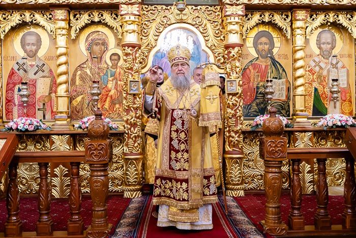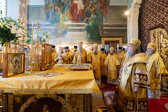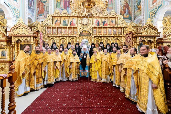 Никольский собор в 1946 году трудами митрополита Николая (Могилевского) был возвращен верующим и возрожден; здесь же, в южном приделе, почивают его святые мощи. Сегодняшняя Литургия совершалась на антиминсе, подписанном приснопамятным архипастырем в 1946 году, после возвращения Никольского храма верующим и его освящения.