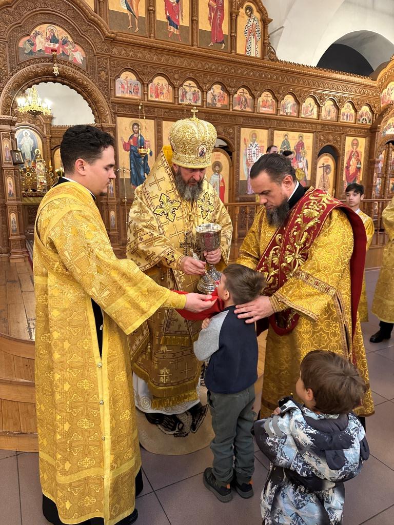 Перед причастием мирян проповедовал священник Виталий Адаменков. После завершения воскресного богослужения Владыка архиепископ поздравил духовенство и паству с воспоминанием Воскресения Господня; затем архиепископ Амфилохий обратился к прихожанам со словами поучения.