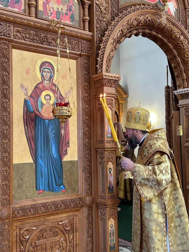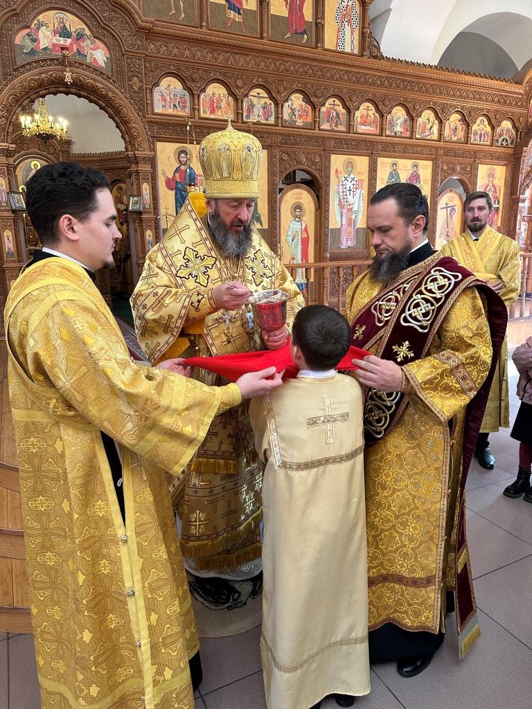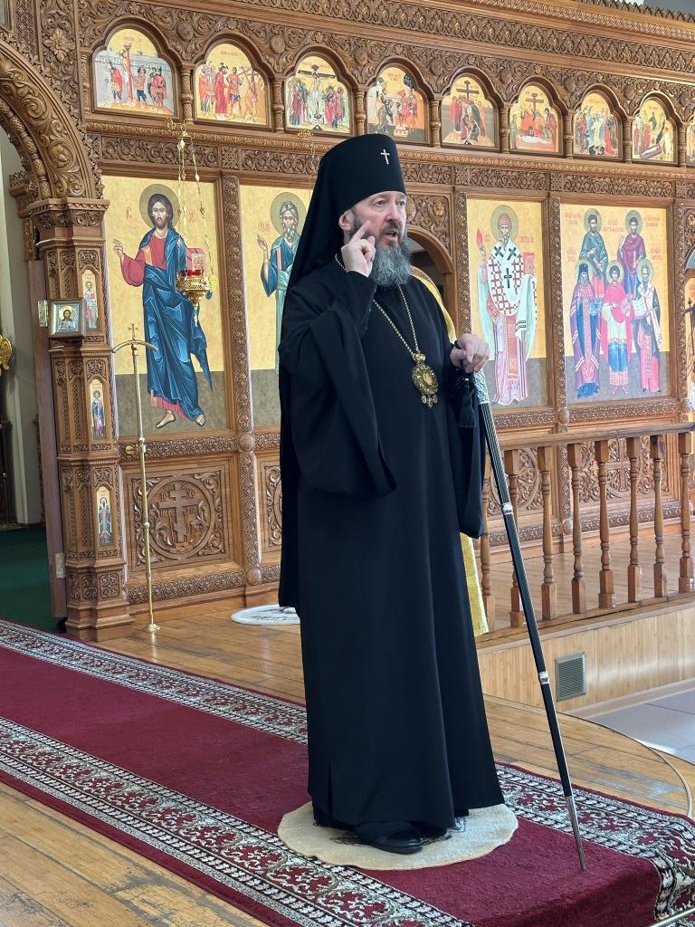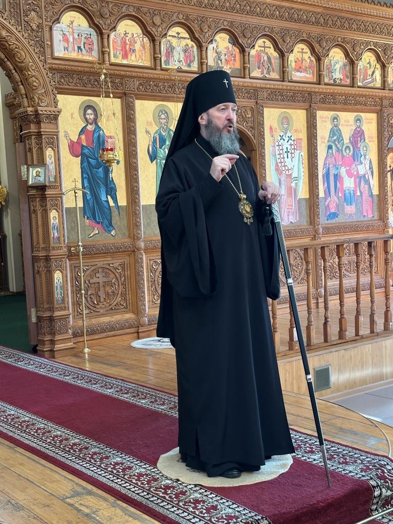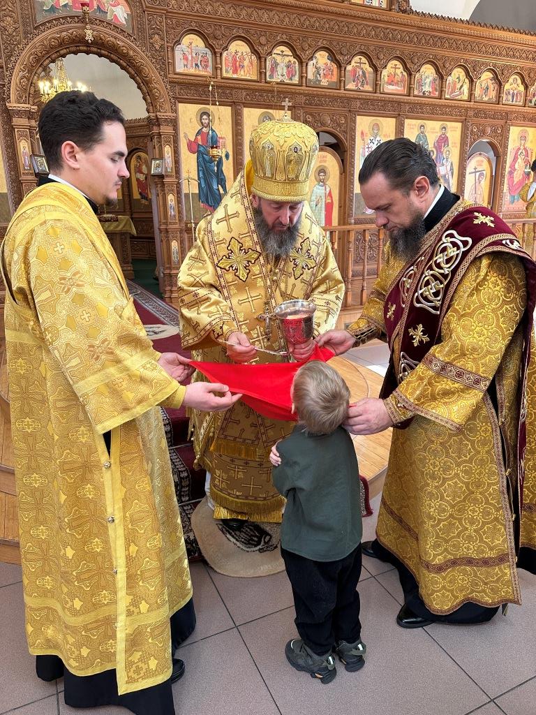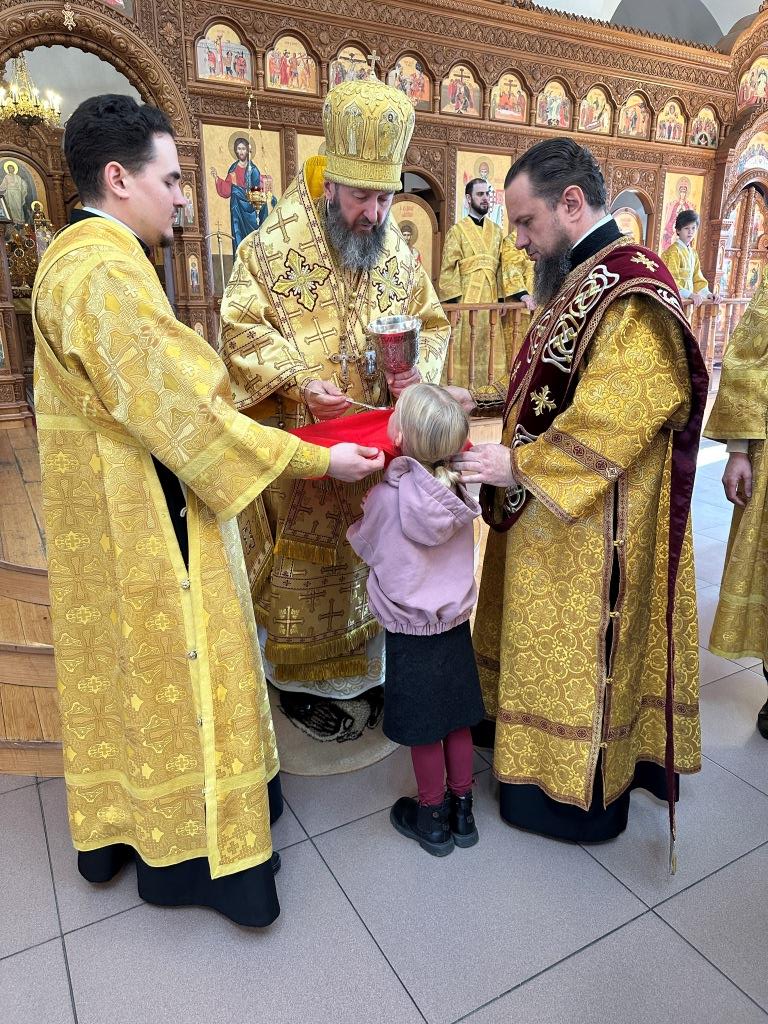 Перед причастием мирян проповедовал священник Константин Дьяков. После завершения богослужения архиепископ Амфилохий поздравил народ Божий с воскресным днём и обратился к прихожанам со словами наставления.