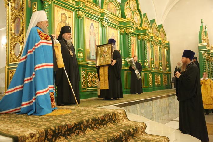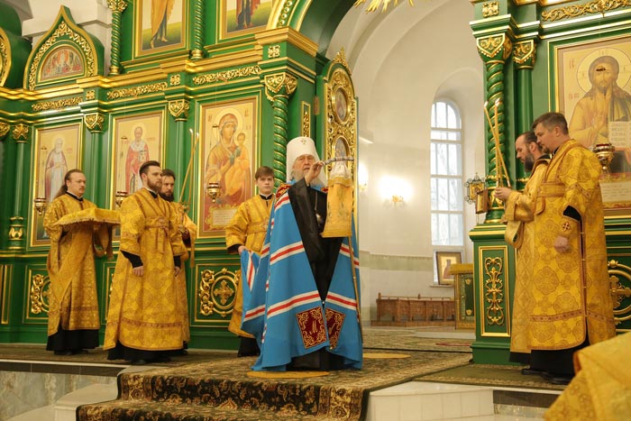 В завершение Литургии было возглашено многолетие Предстоятелю Русской Православной Церкви Святейшему Патриарху Московскому и всея Руси Кириллу; Главе, епископату, духовенству и пастве Казахстанского Митрополичьего округа; Президенту, властям, воинству и всему народу Казахстана.