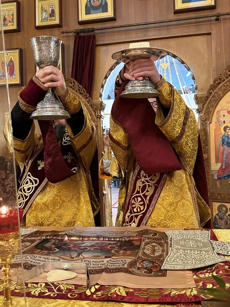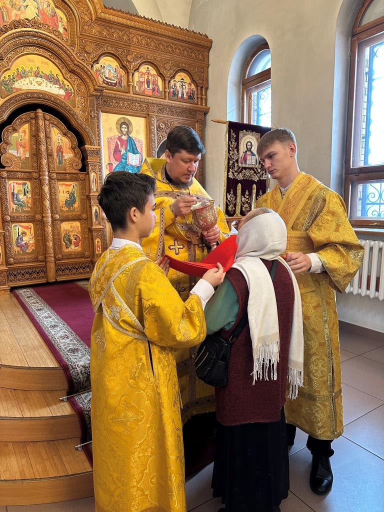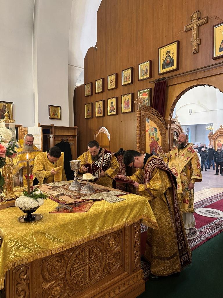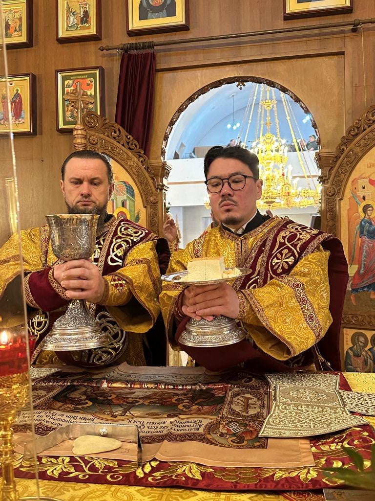 Праздничные песнопения Божественной Литургии исполнял хор Андреевского собора, регент Н. Романцова. В храме молились и причащались Святых Христовых Таин насельники Свято-Троицкого мужского монастыря города Усть-Каменогорска, сотрудники епархиального управления, преподаватели и воспитанники Центральной воскресной школы и прихожане главного храма епархии.