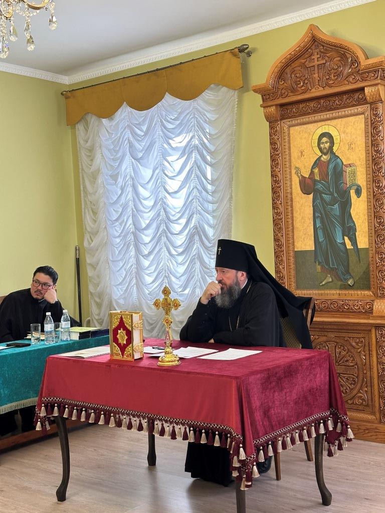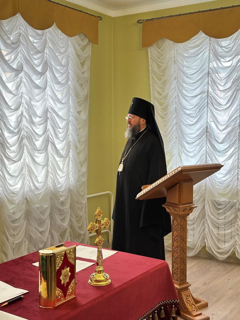 В первой части заседания Высокопреосвященнейший архиепископ Амфилохий выступил с докладом, посвященным жизни и деятельности Усть-Каменогорской епархии в уходящем 2025 году.