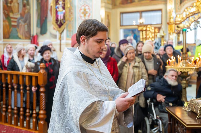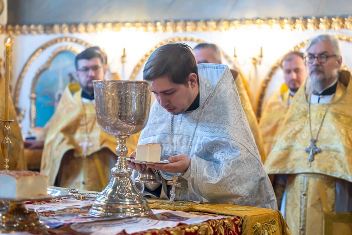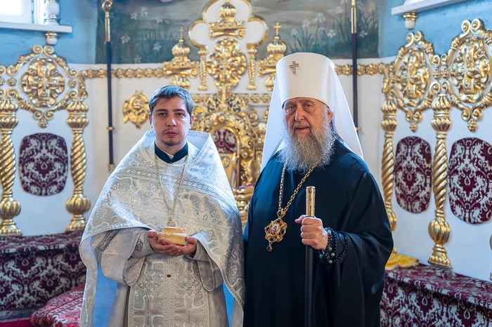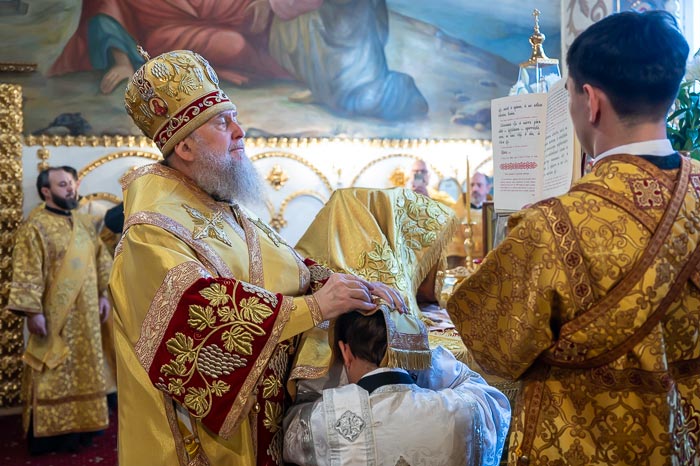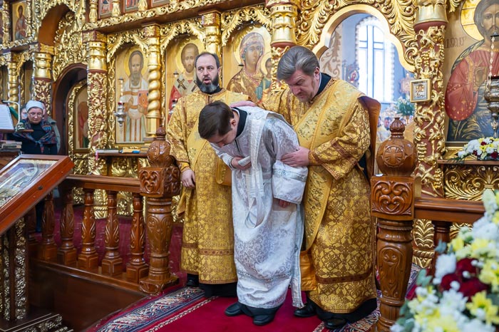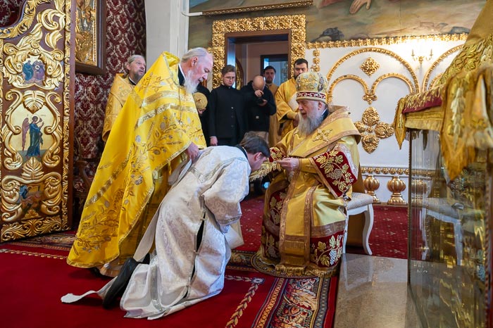 После херувимской песни митрополит Александр совершил священническую хиротонию диакона Владислава Пашкова, клирика Никольского собора, кандидата богословия, заведующего церковно-практической кафедрой Алма-Атинской духовной семинарии и сотрудника информационно-издательского отдела Митрополичьего округа.