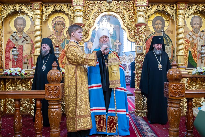 В завершение Литургии состоялось славление перед образом и ковчегом с мощами святителя Николая, после чего было провозглашено многолетие Предстоятелю Русской Православной Церкви Святейшему Патриарху Московскому и всея Руси Кириллу; Главе, Преосвященным архипастырям, духовенству, монашествующим и богоспасаемой православной пастве Казахстанского Митрополичьего округа; Президенту, властям, воинству и всему народу Казахстана, именинникам дня.