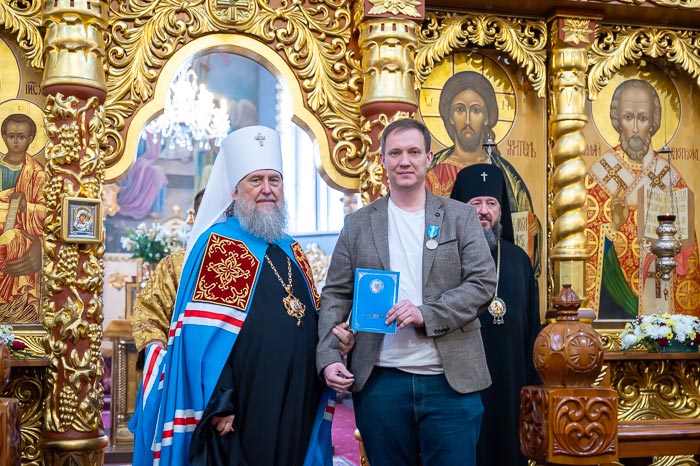 Митрополит Александр удостоил автора монумента и благотворителей Никольского собора медалей «Енбек Үшiн» (За труды).