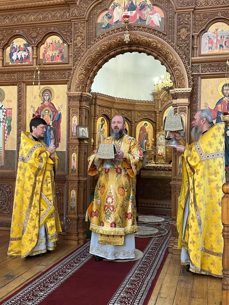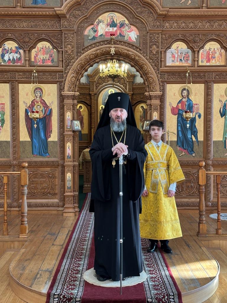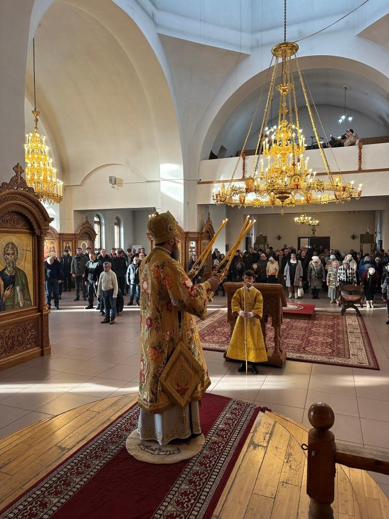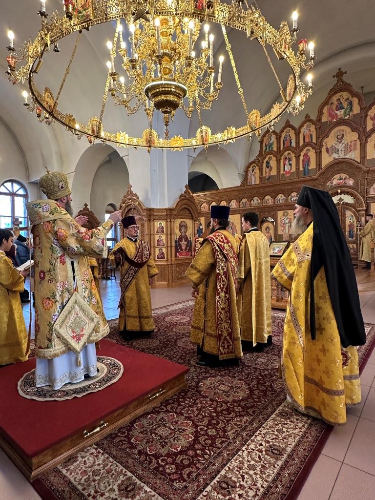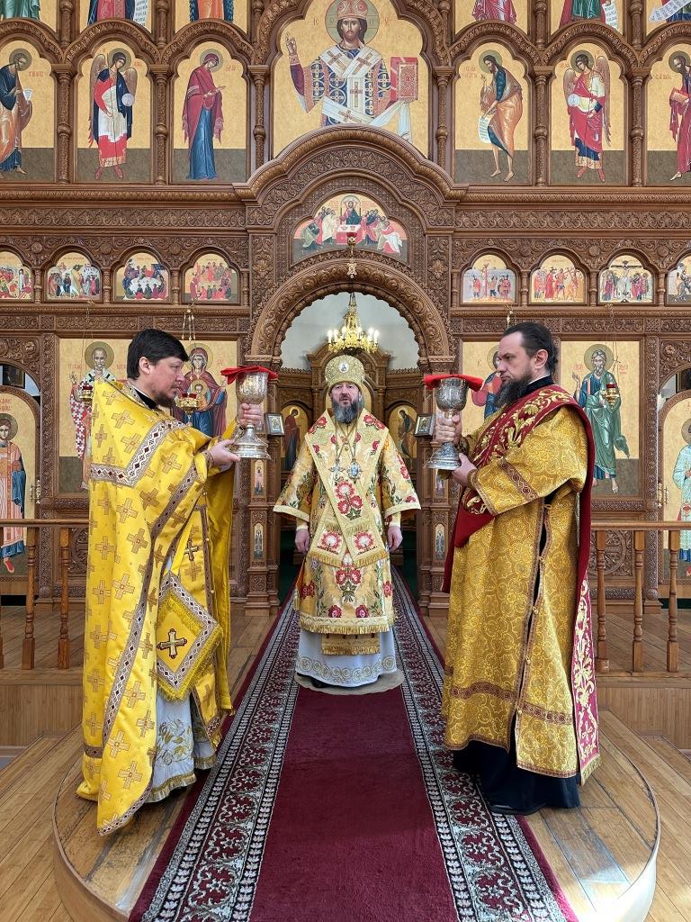 Управляющий Усть-Каменогорской и Семипалатинской епархией Высокопреосвященнейший архиепископ Амфилохий возглавил служение Божественной Литургии святителя Иоанна Златоуста в Свято-Андреевском кафедральном соборе. Архипастырю сослужили: ключарь кафедрального собора иеромонах Никодим (Авдеев), клирик собора иерей Роман Подрезов, протодиакон Андрей Дудник, секретарь епархии диакон Илия Кван, диакон Кирилл Рамазанов.
