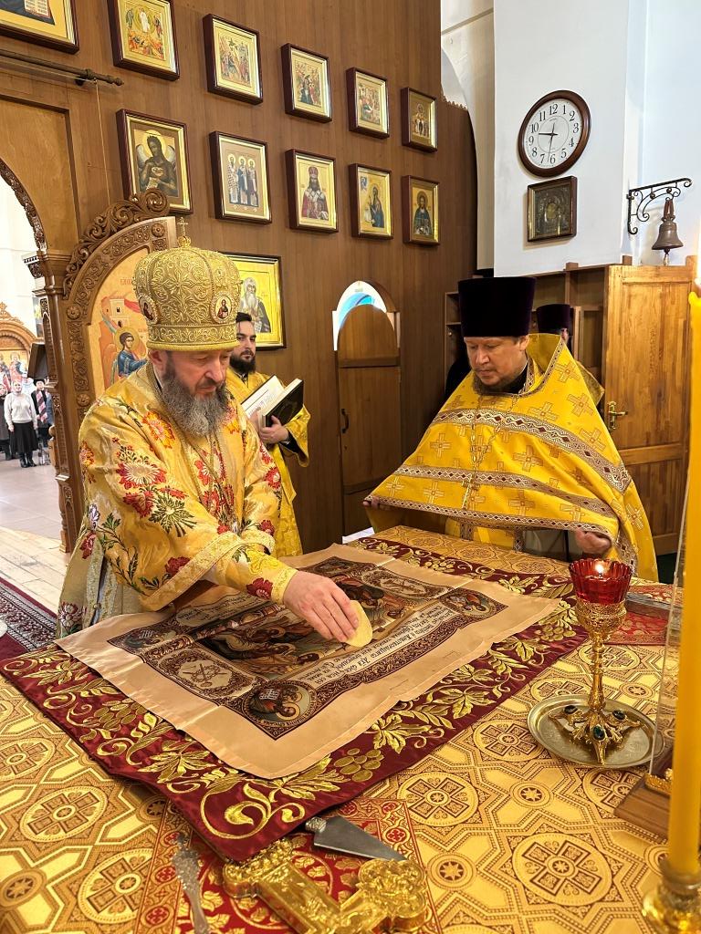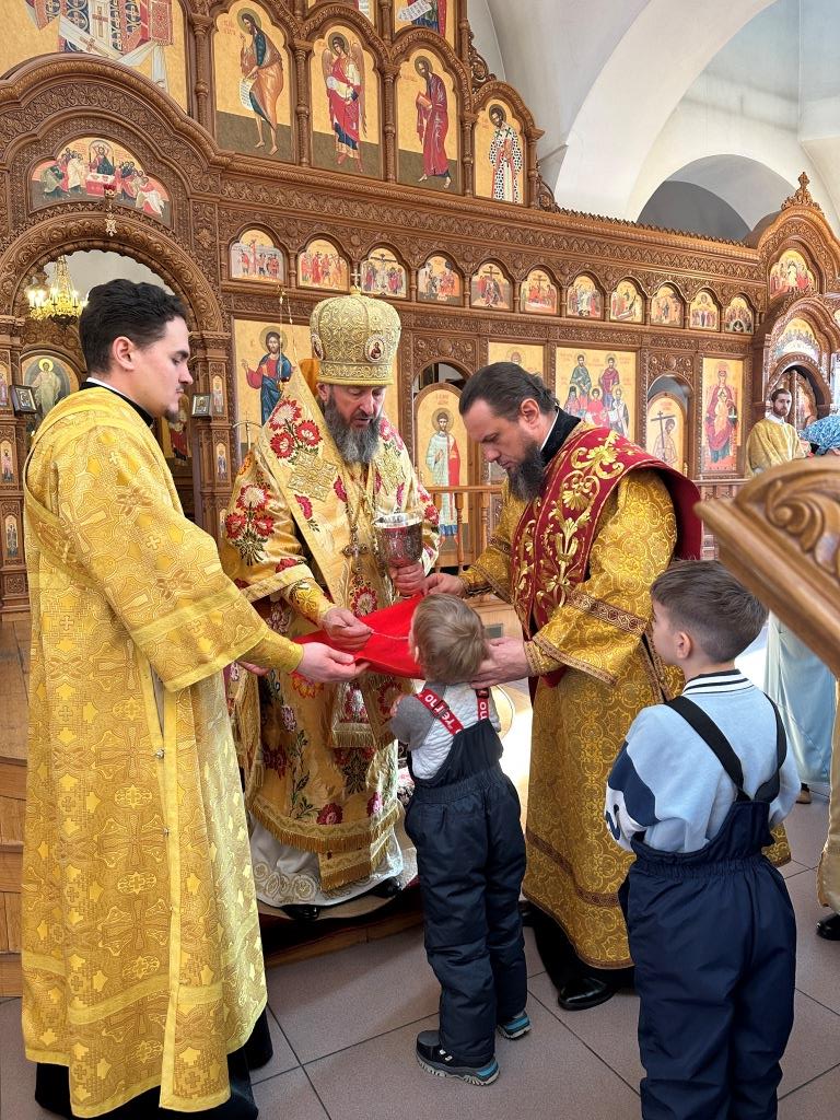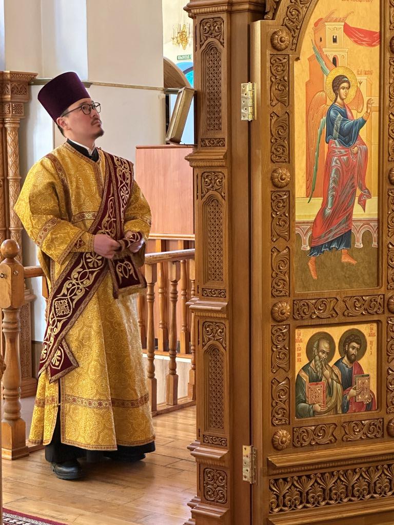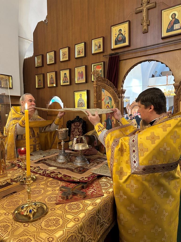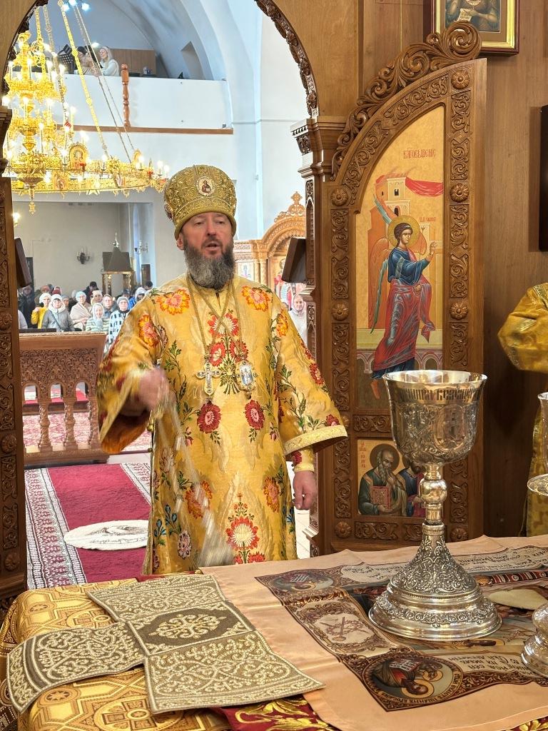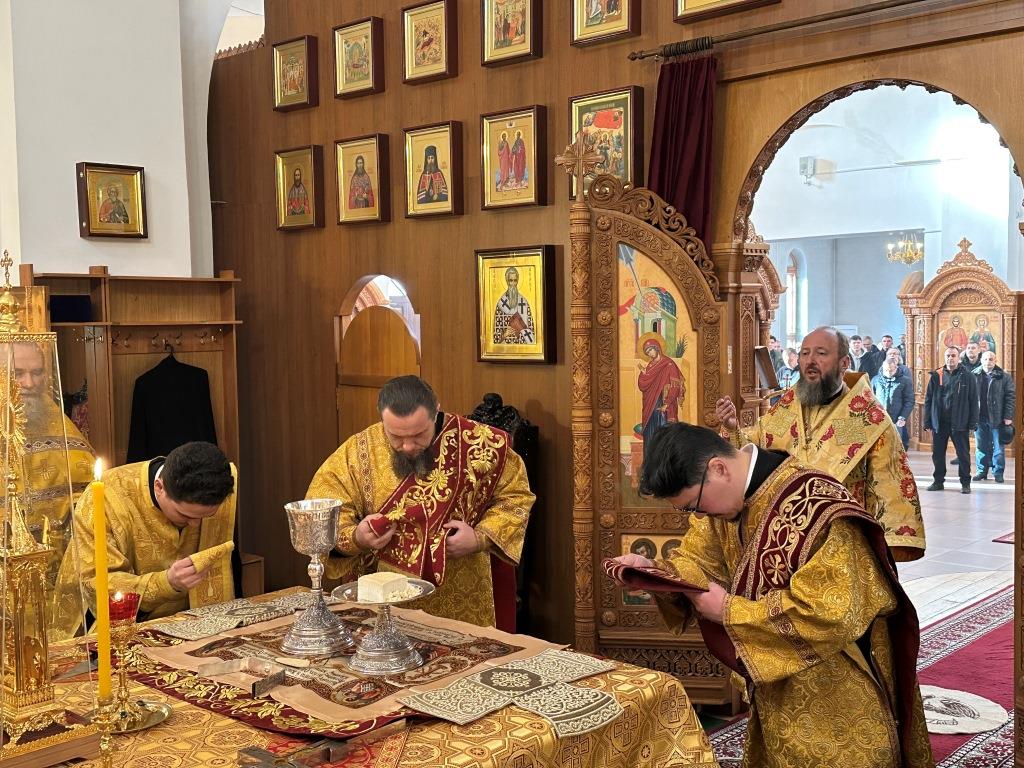 Управляющий Усть-Каменогорской и Семипалатинской епархией Высокопреосвященнейший архиепископ Амфилохий возглавил служение Божественной Литургии святителя Иоанна Златоуста в Свято-Андреевском кафедральном соборе. Архипастырю сослужили: ключарь кафедрального собора иеромонах Никодим (Авдеев), клирик собора иерей Роман Подрезов, протодиакон Андрей Дудник, секретарь епархии диакон Илия Кван, диакон Кирилл Рамазанов.