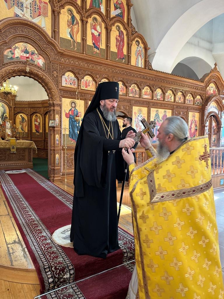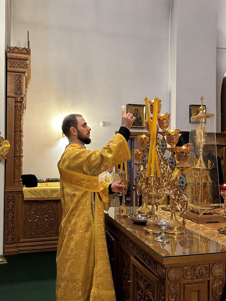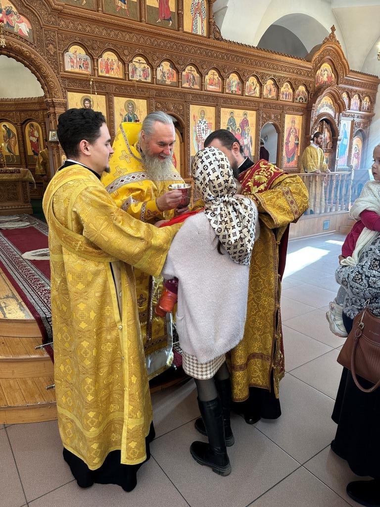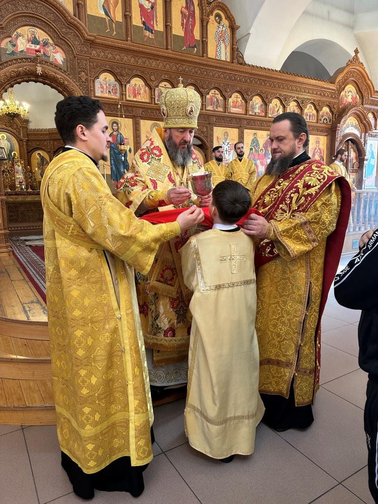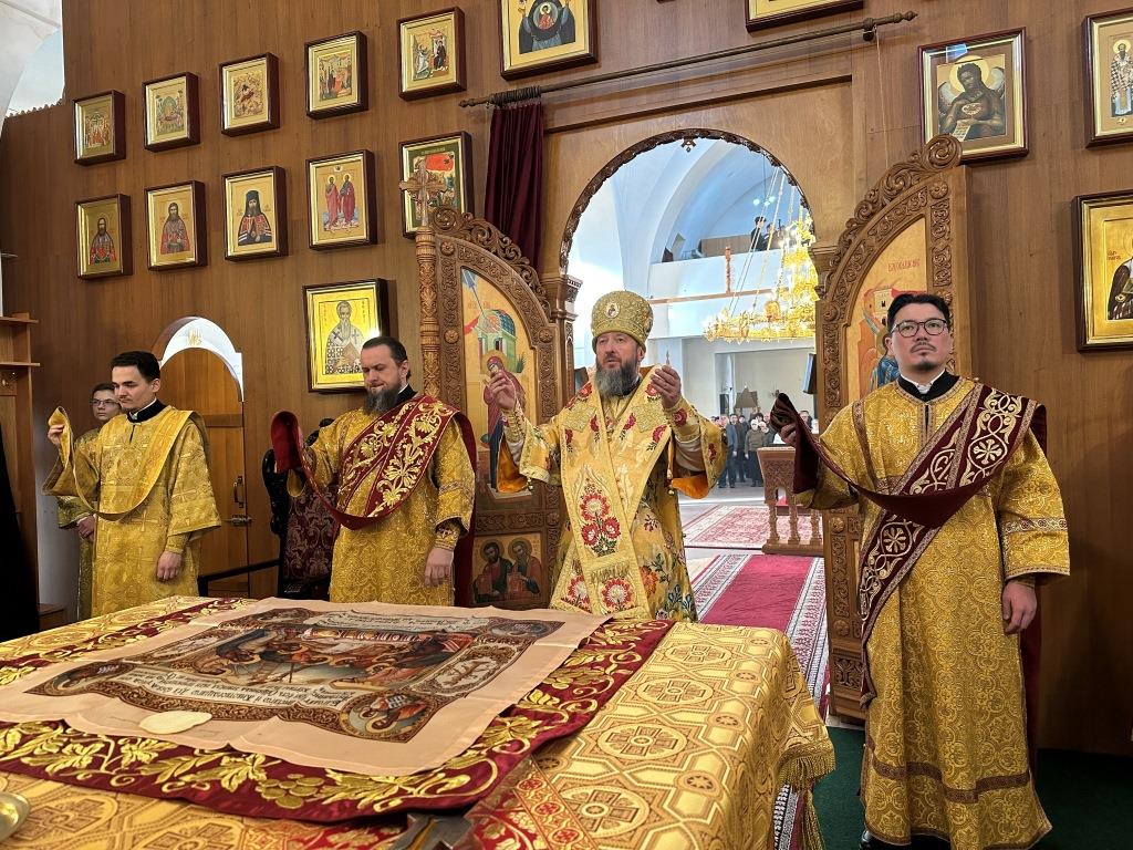 Управляющий Усть-Каменогорской и Семипалатинской епархией Высокопреосвященнейший архиепископ Амфилохий возглавил служение Божественной Литургии святителя Иоанна Златоуста в Свято-Андреевском кафедральном соборе. Архипастырю сослужили: ключарь кафедрального собора иеромонах Никодим (Авдеев), клирик собора иерей Роман Подрезов, протодиакон Андрей Дудник, секретарь епархии диакон Илия Кван, диакон Кирилл Рамазанов.