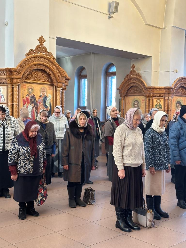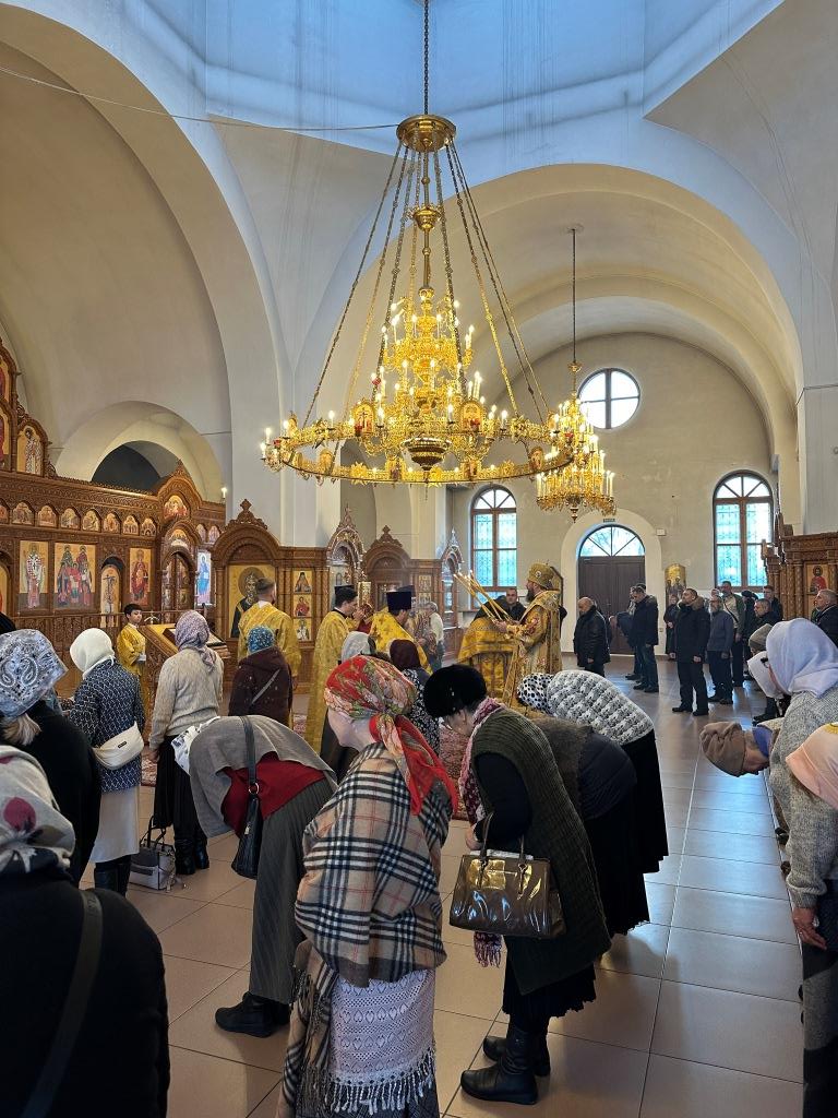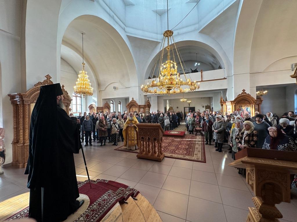 Хор под управлением регента Н. Романцовой исполнял песнопения Божественной Литургии и Недели святых отец. За воскресным богослужением молились насельники Свято-Троицкого мужского монастыря города Усть-Каменогорска, прихожане собора, преподаватели и воспитанники Центральной воскресной школы, сотрудники епархиального управления. После завершения богослужения Владыка архиепископ обратился к собравшимся со Архипастырским наставлением.