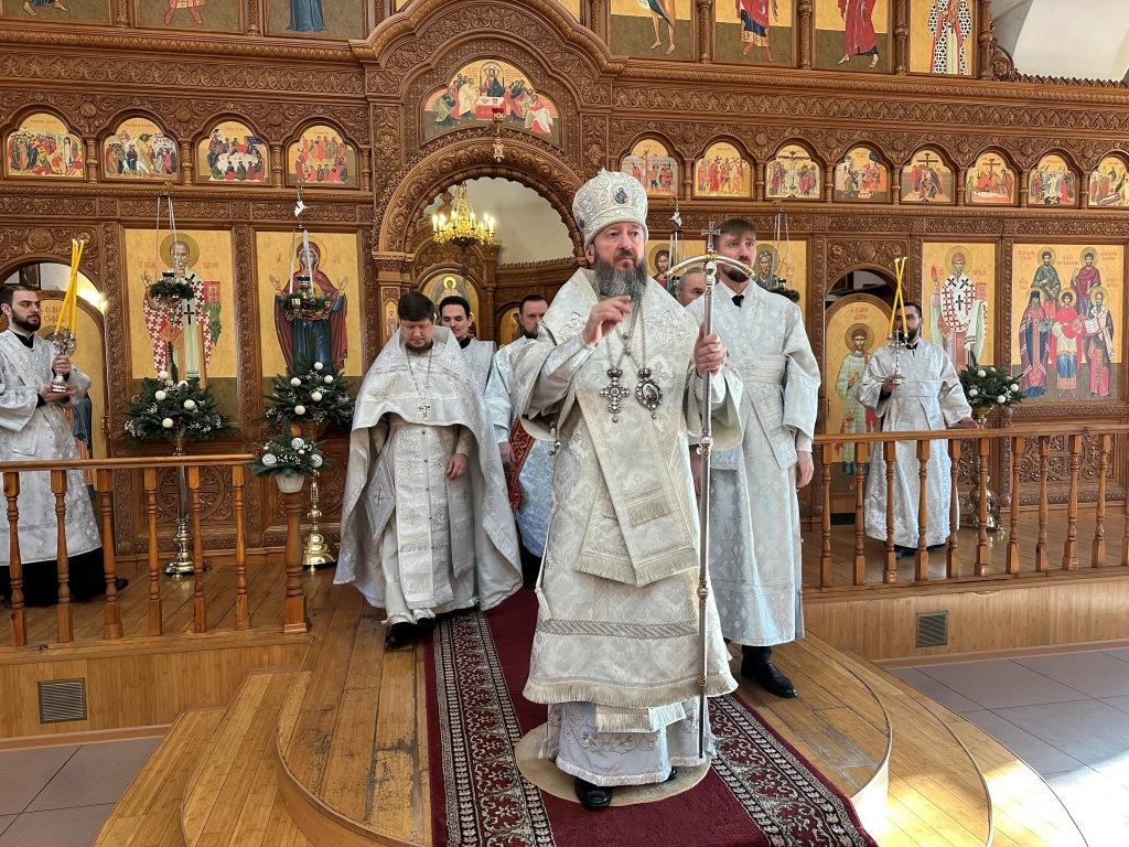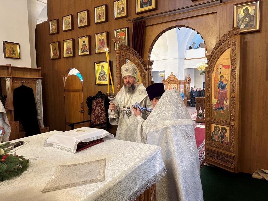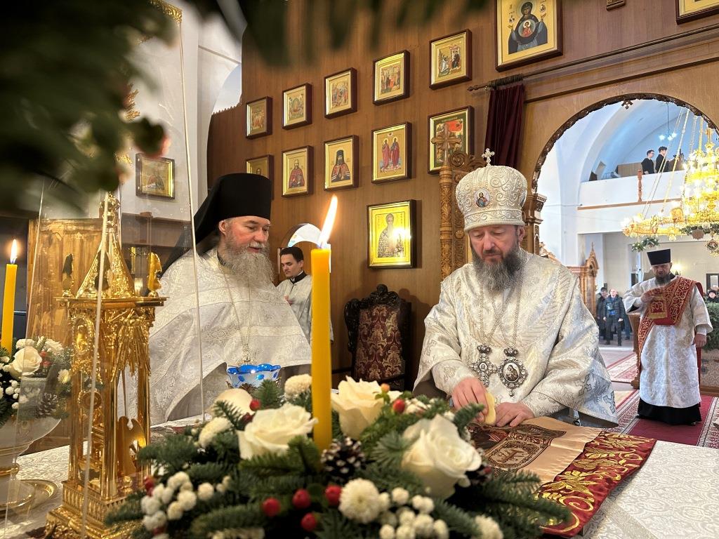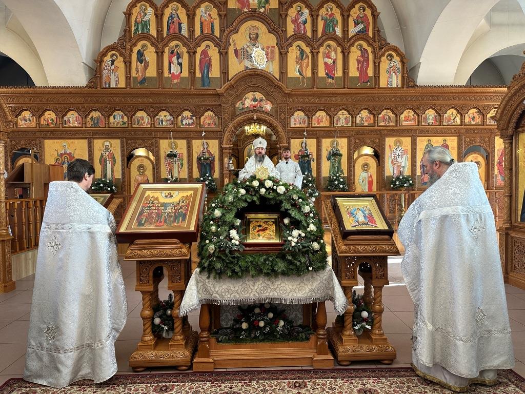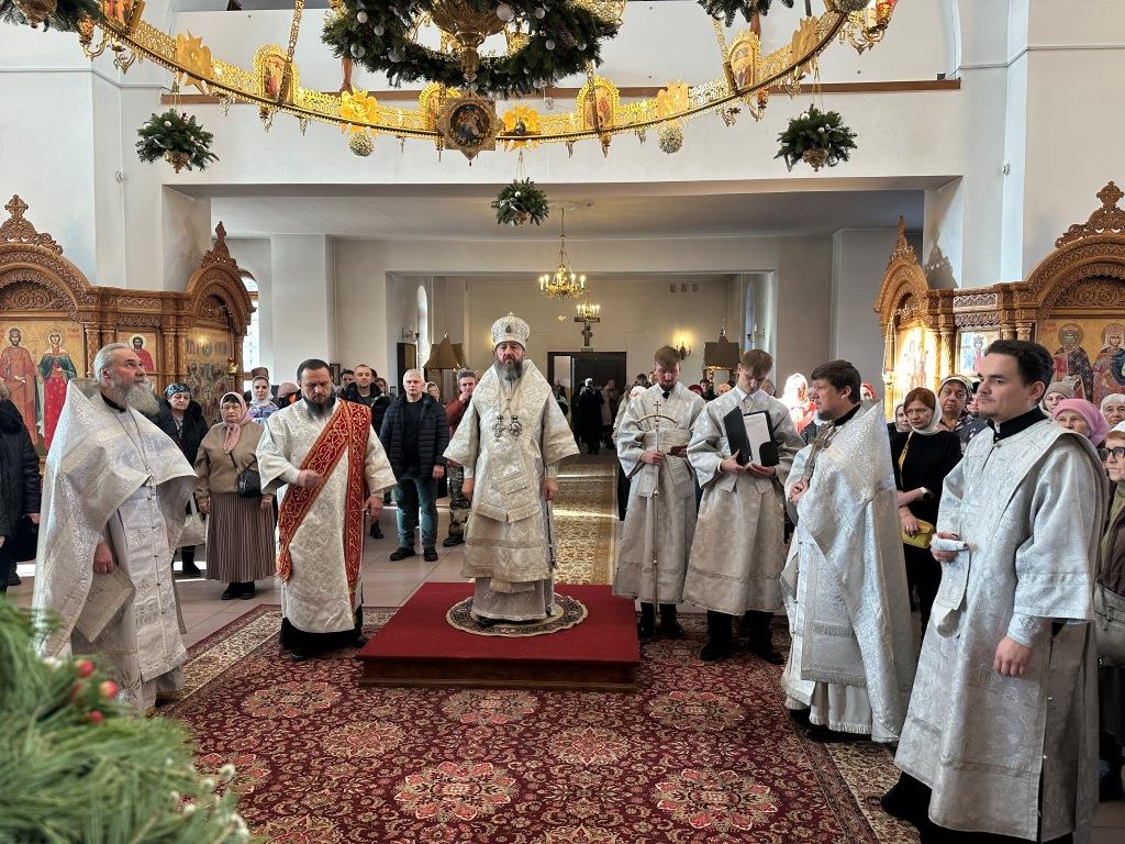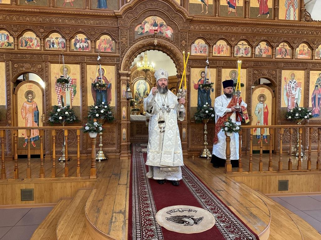 После заамвонной молитвы состоялось славление Рождеству Христову и Собору новомучеников и исповедников Восточно-Казахстанских. Затем Высокопреосвященный владыка вознёс молитву «святым подвижникам, в земле нашей прославленным»; завершая богослужение, архиепископ Амфилохий обратился к собравшимся со словами поучения.