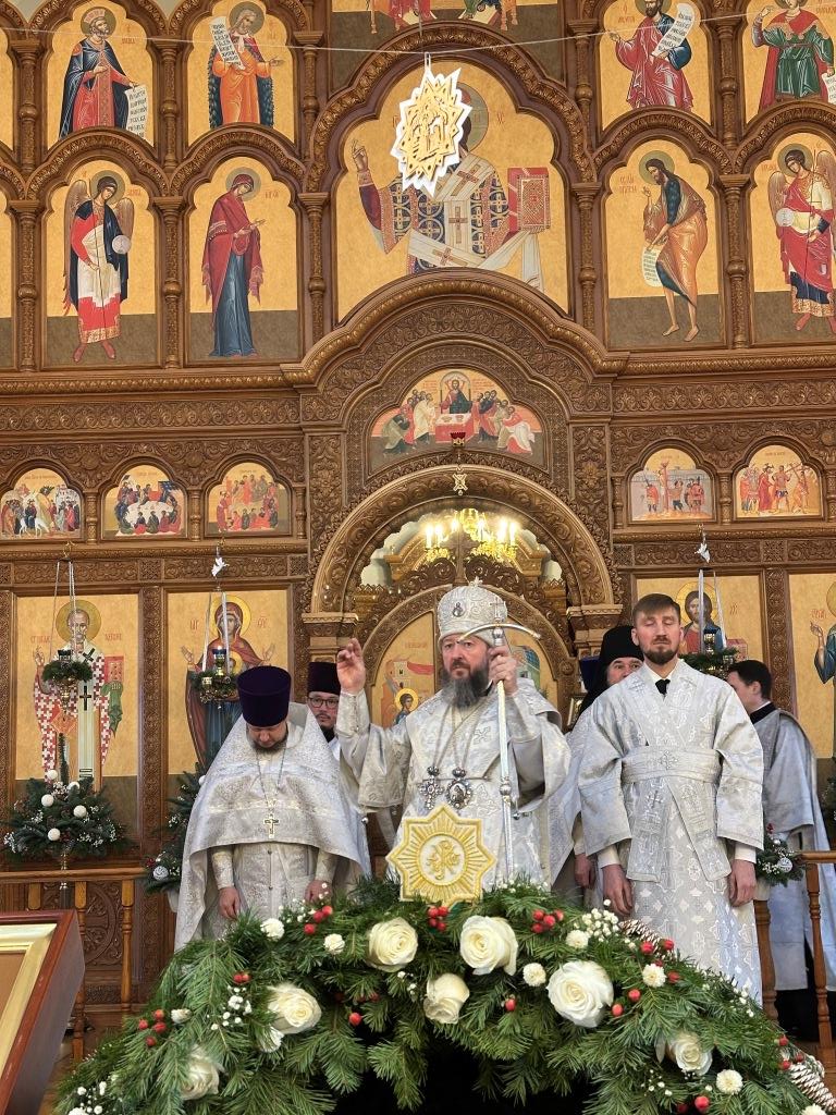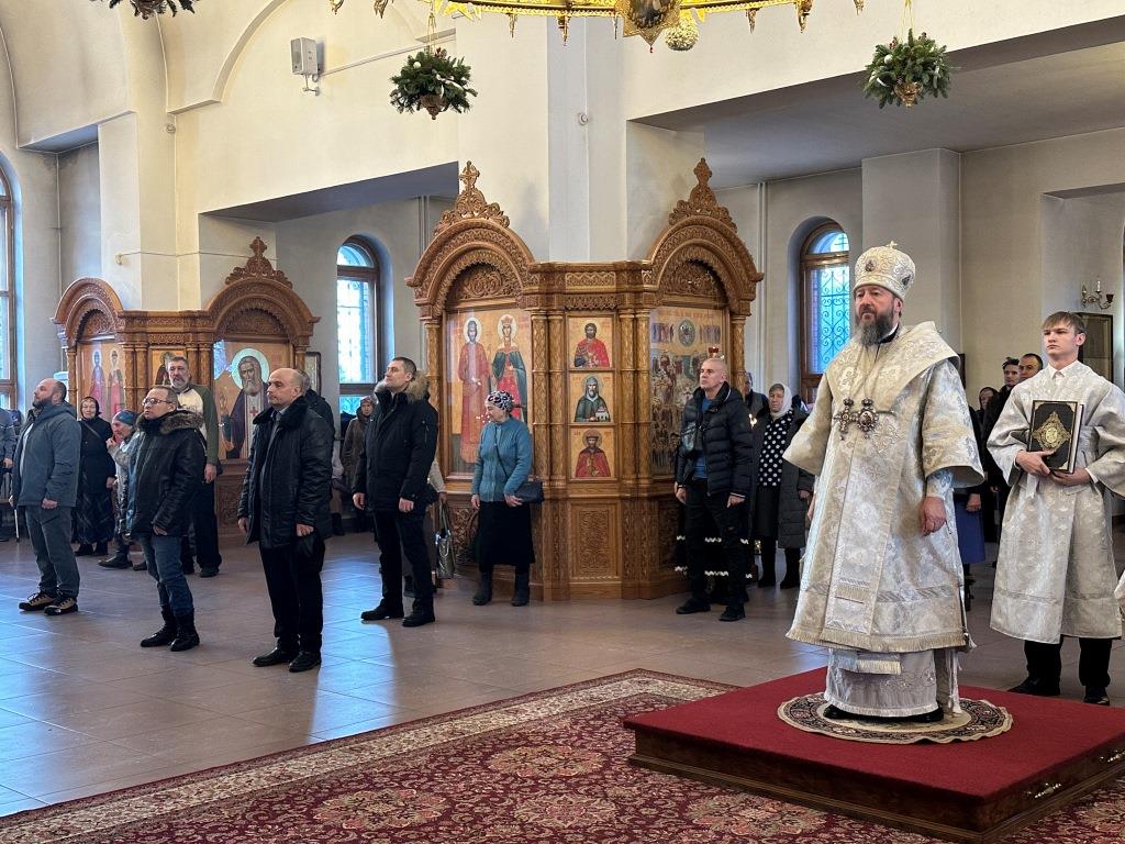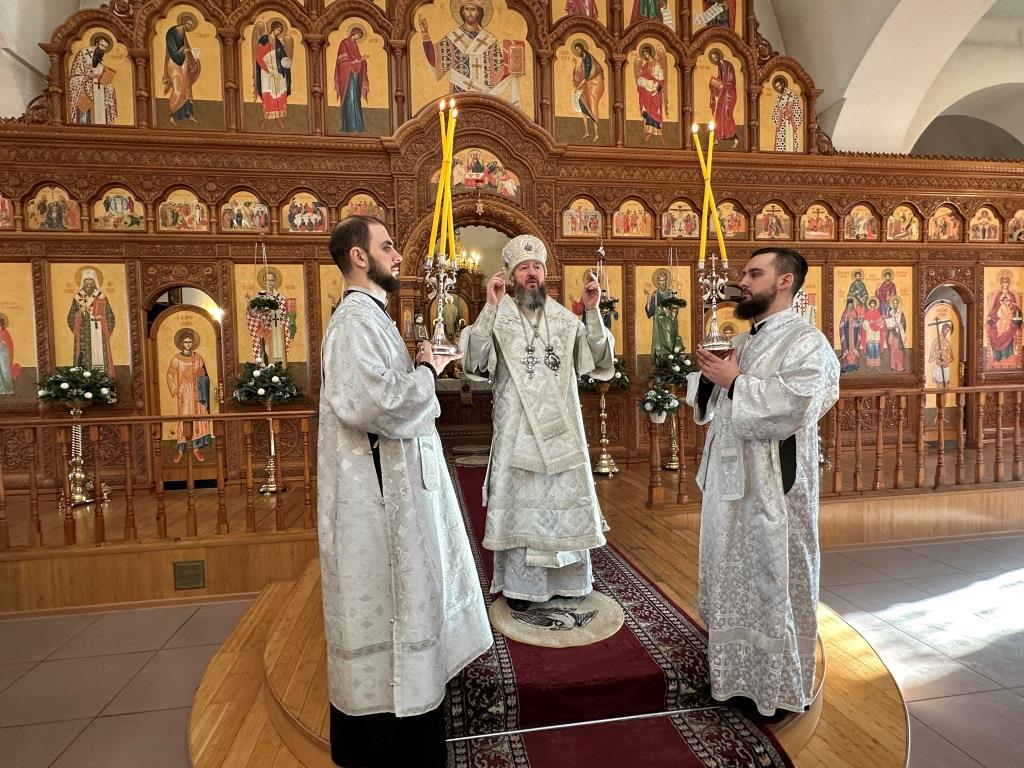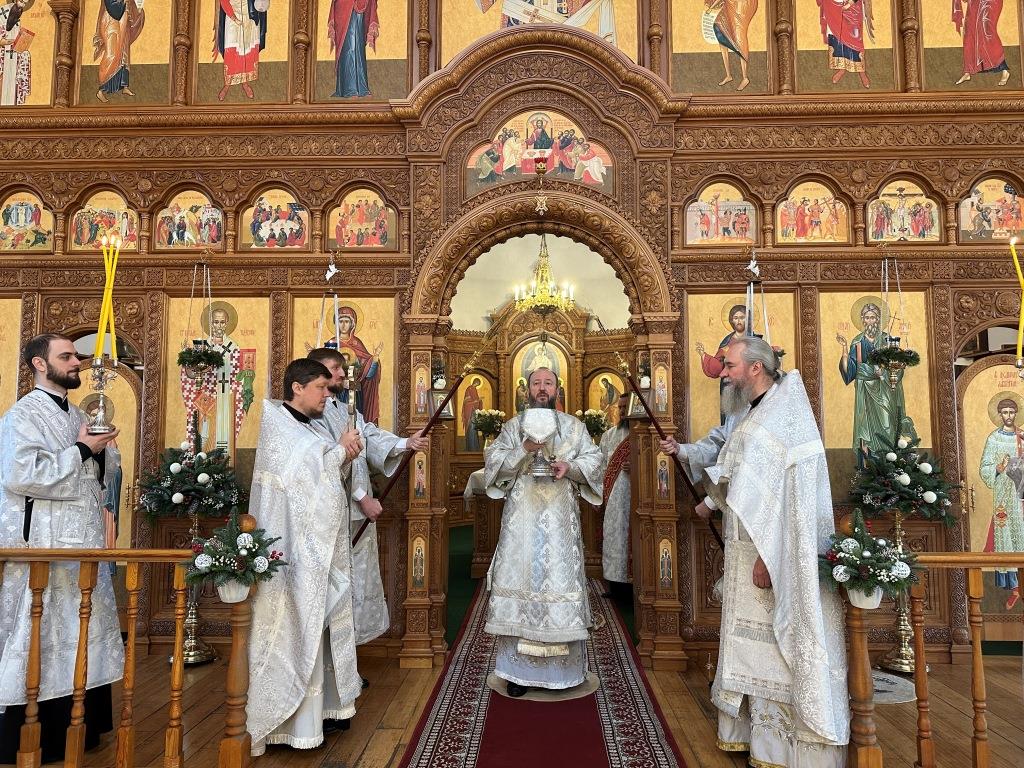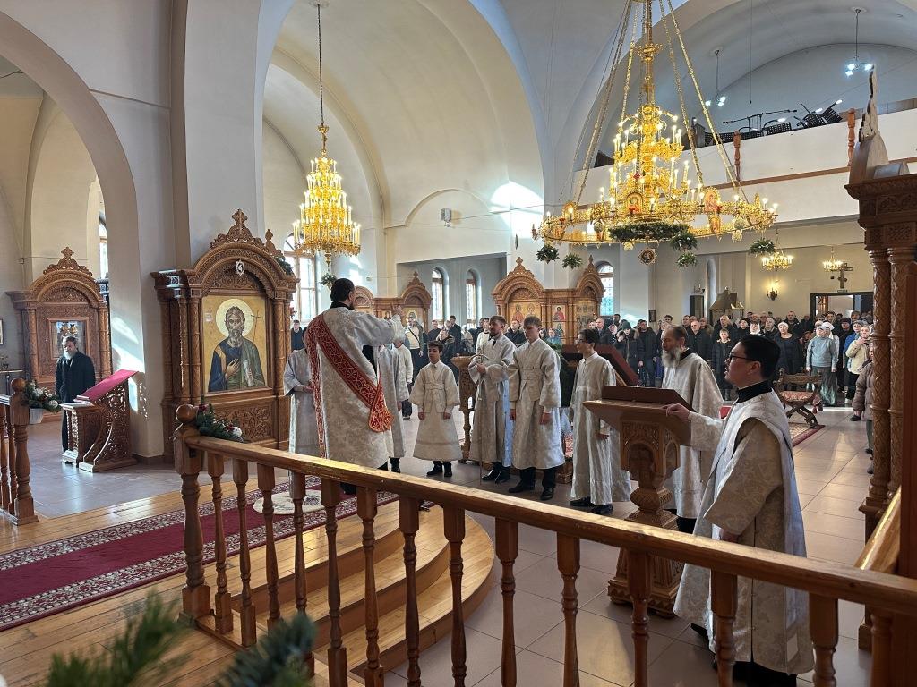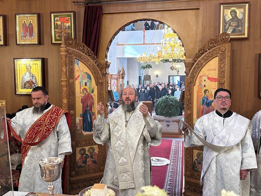 После заамвонной молитвы состоялось славление Рождеству Христову и Собору новомучеников и исповедников Восточно-Казахстанских. Затем Высокопреосвященный владыка вознёс молитву «святым подвижникам, в земле нашей прославленным»; завершая богослужение, архиепископ Амфилохий обратился к собравшимся со словами поучения.