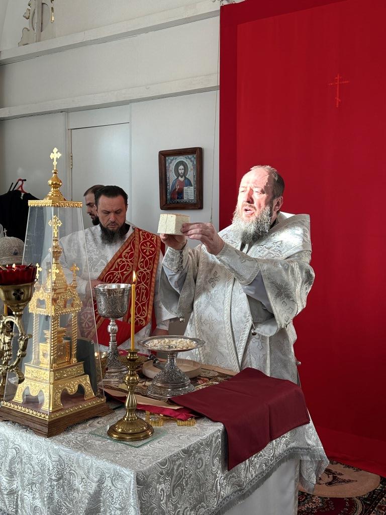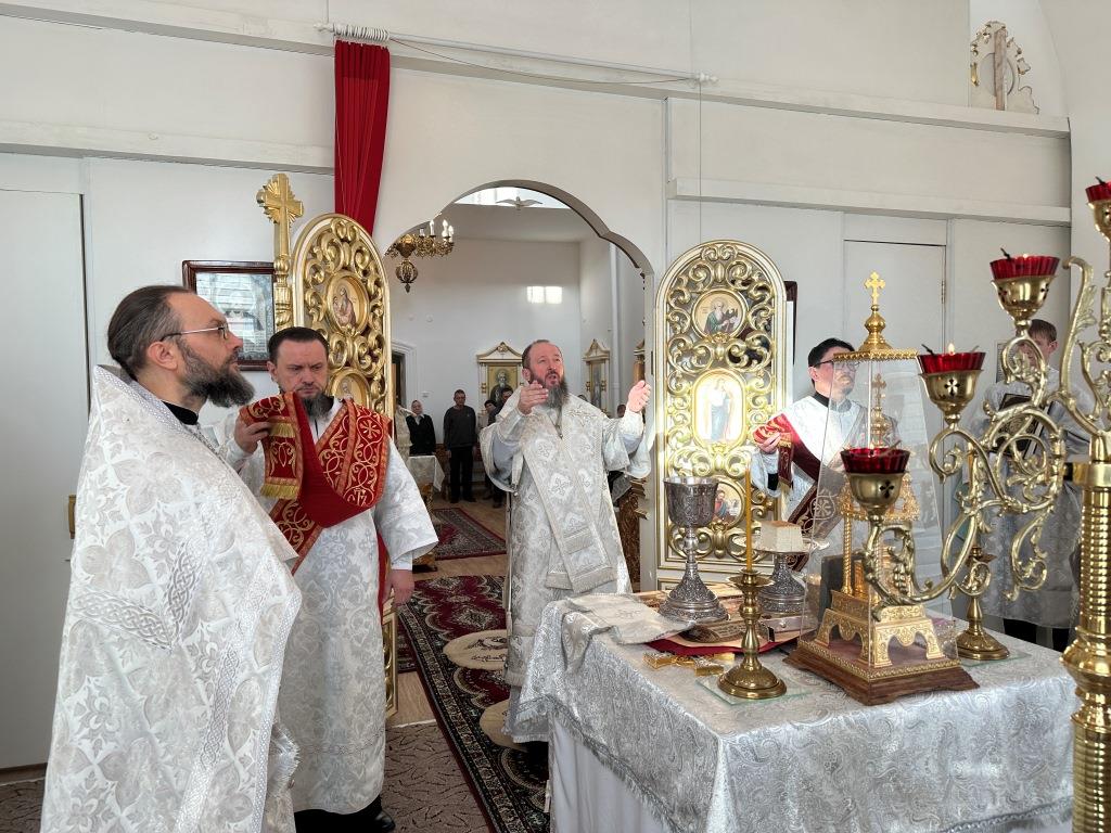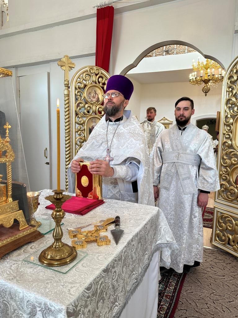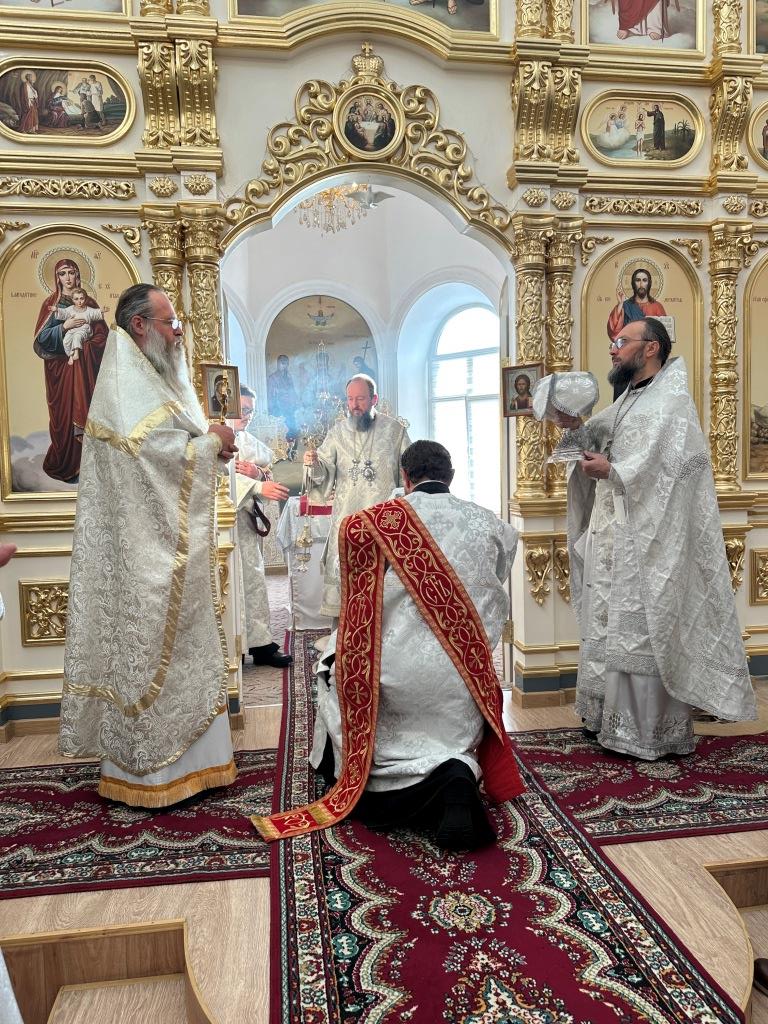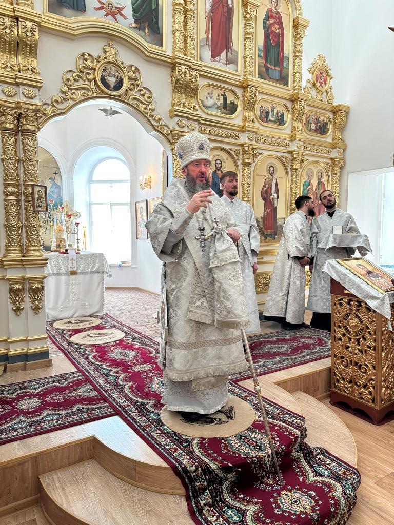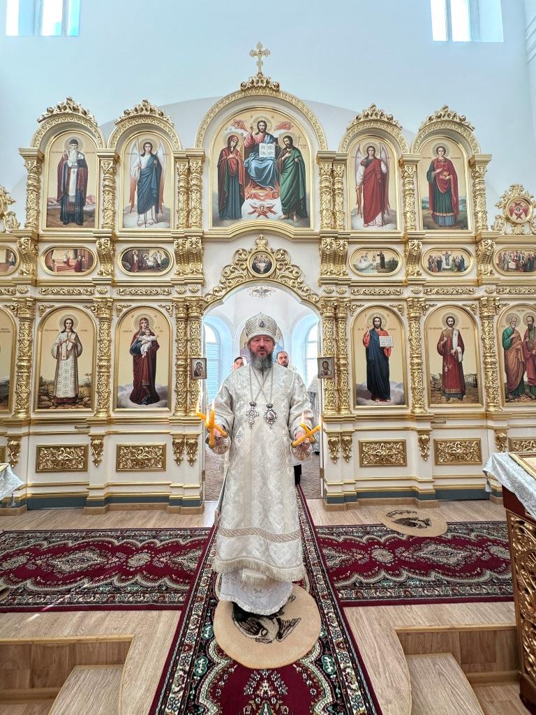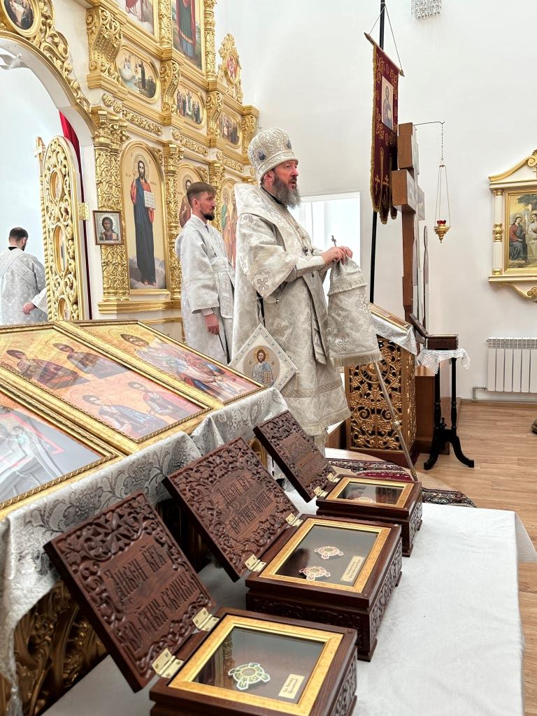 Его Высокопреосвященству сослужили: благочинный Семипалатинского церковного округа протоиерей Роман Сычук, клирик Знаменско-Абалацкой обители иеромонах Агапит (Никонов); протодиакон Андрей Дудник, секретарь епархии диакон Илия Кван.