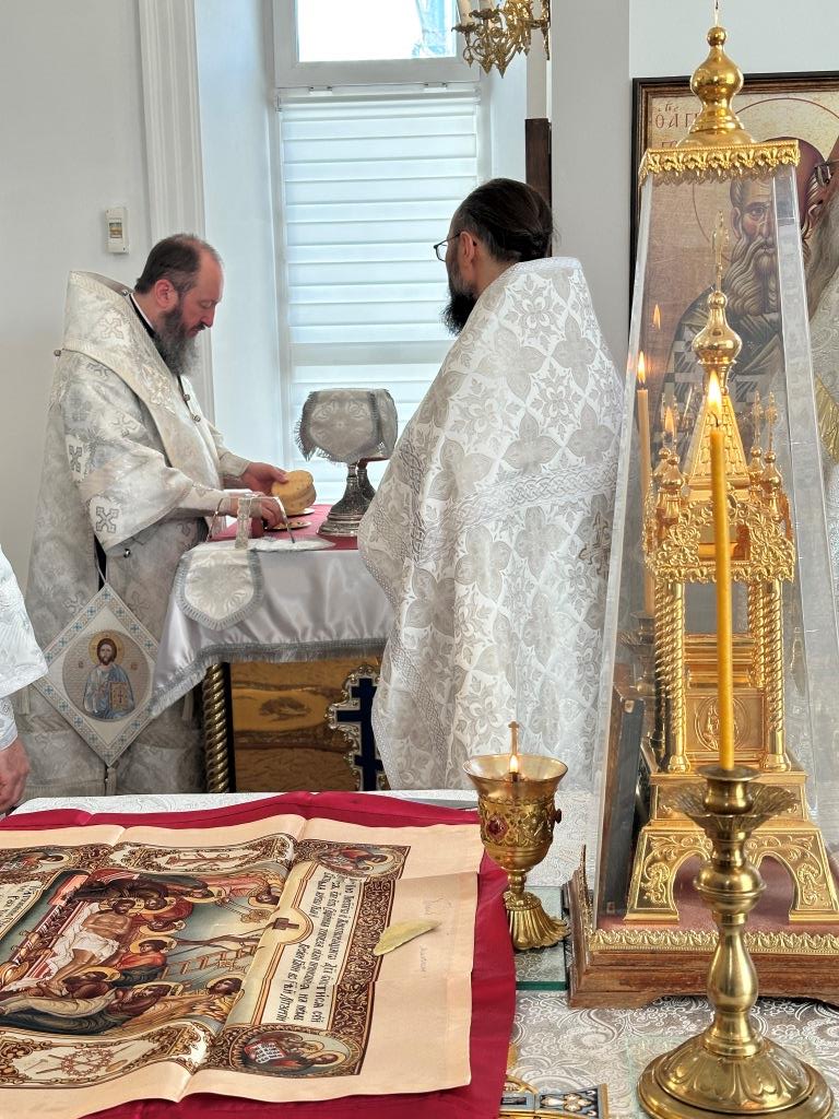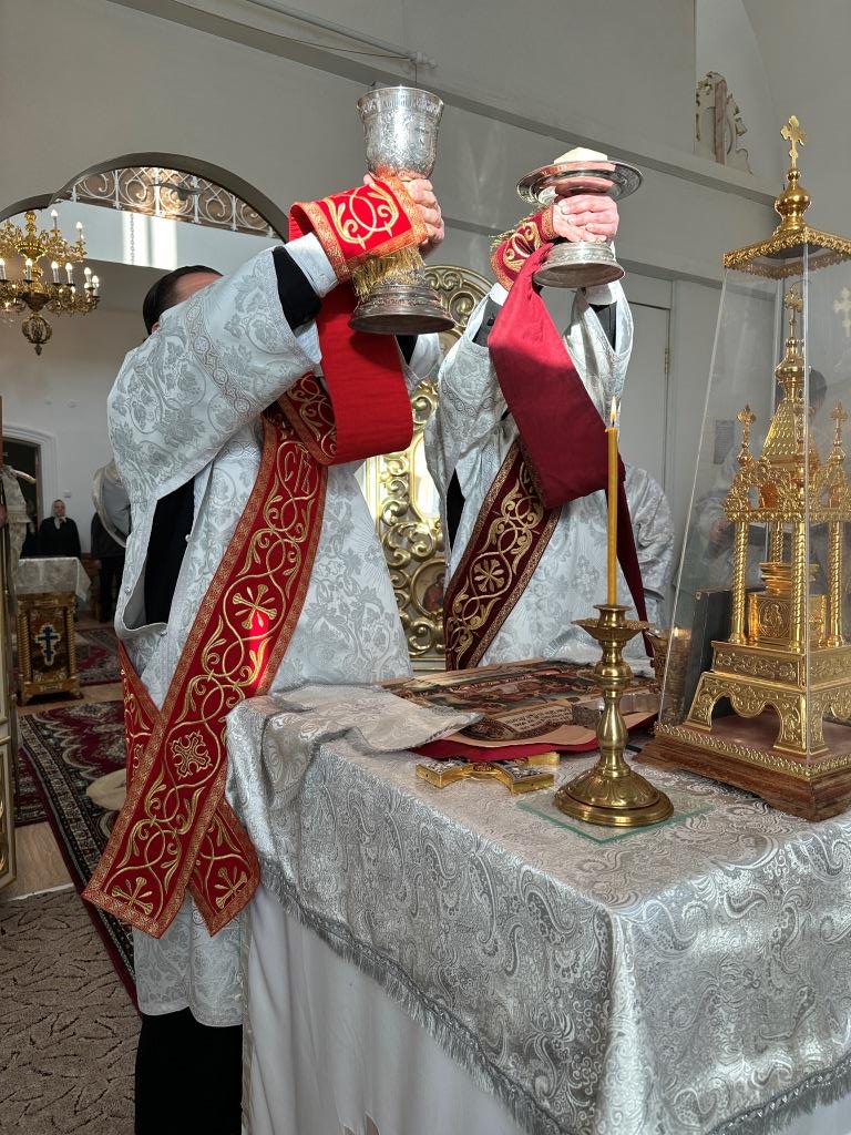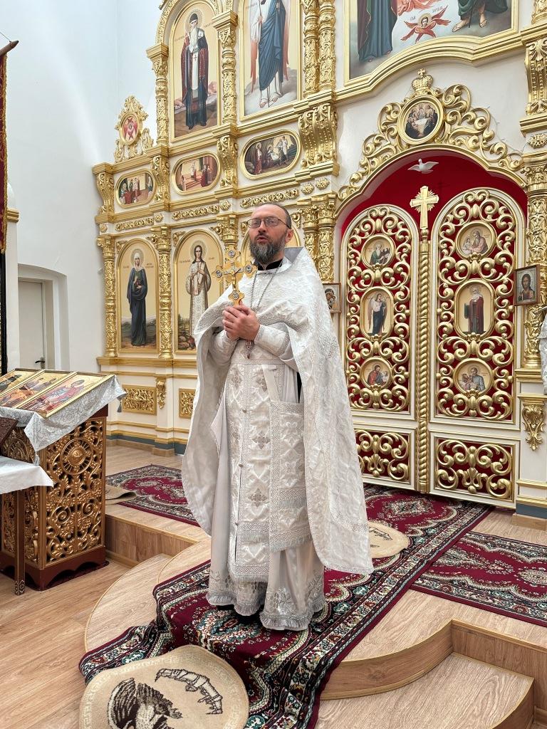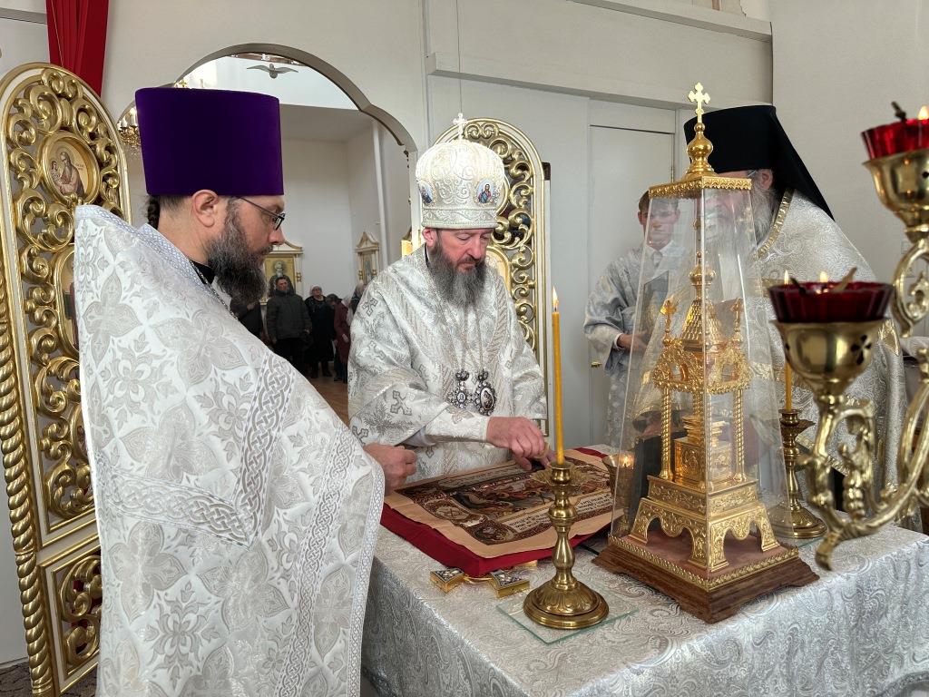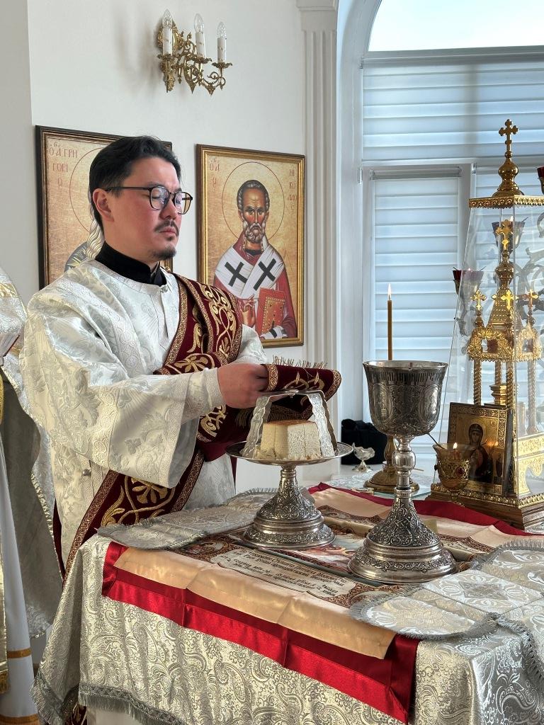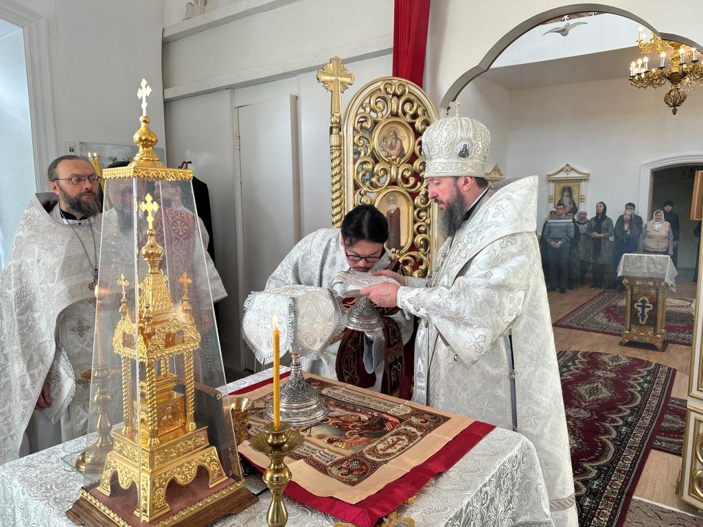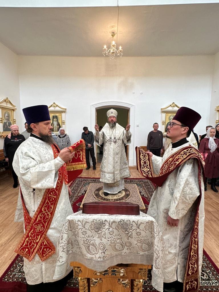 Его Высокопреосвященству сослужили: благочинный Семипалатинского церковного округа протоиерей Роман Сычук, клирик Знаменско-Абалацкой обители иеромонах Агапит (Никонов); протодиакон Андрей Дудник, секретарь епархии диакон Илия Кван.