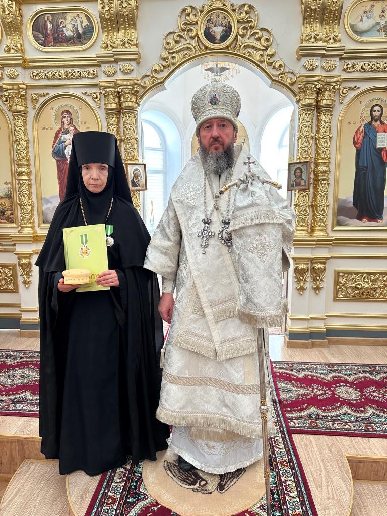 Во внимание к трудам по развитию Знаменско-Петропавловского женского монастыря и в связи с 30-летием со дня монашеского пострига игумения Марионилла (Помельникова) награждена орденом преподобного Севастиана, старца Карагандинского.