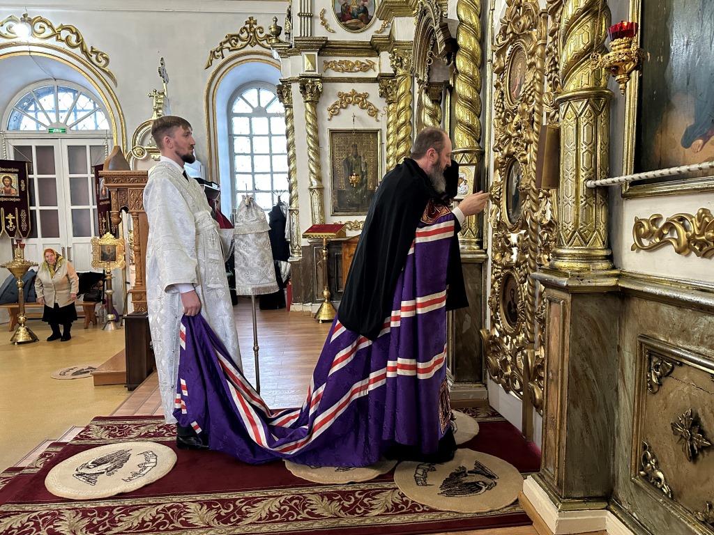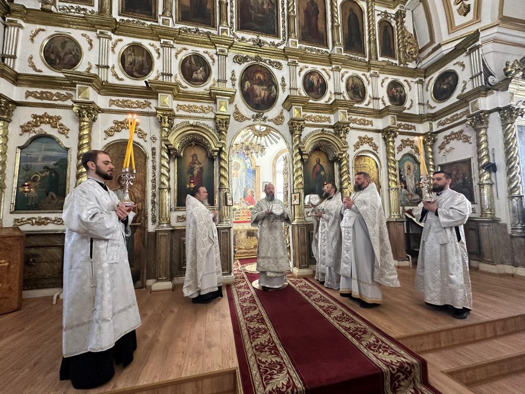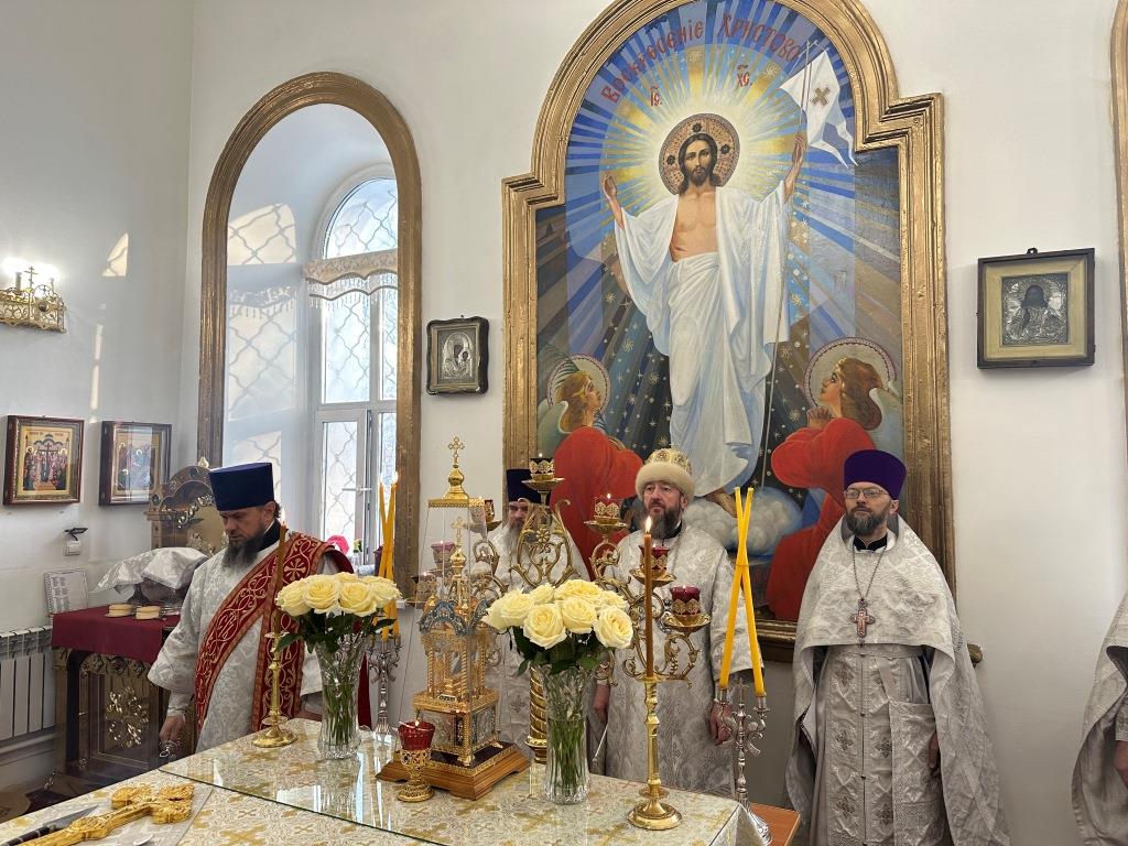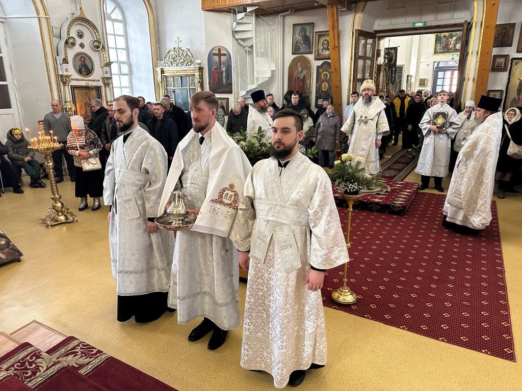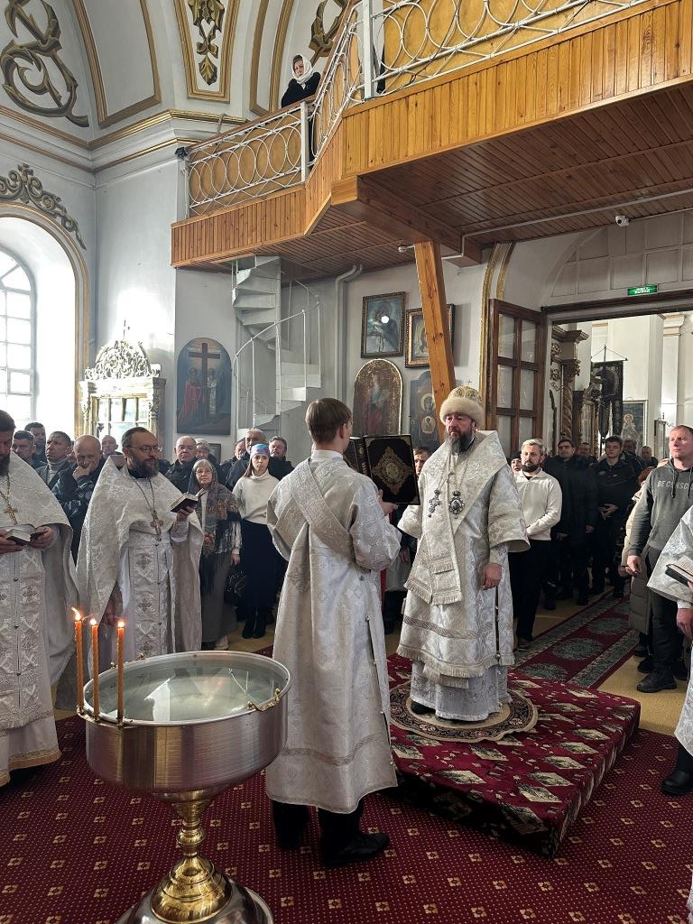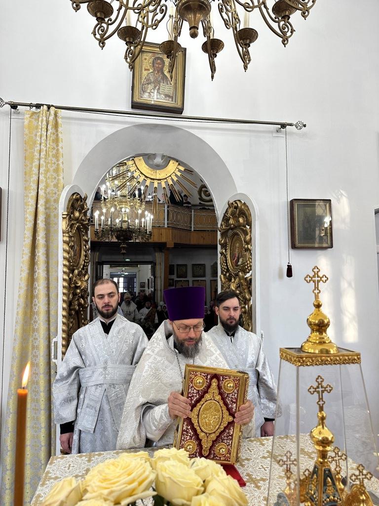 Хор Воскресенского собора под управлением регента Ю. Хохряковой исполнял песнопения Божественной Литургии. За богослужением молились прихожане Воскресенского собора, преподаватели и воспитанники приходской воскресной школы, представители казачьих организаций. Перед причастием мирян проповедовал протоиерей Петр Хонин.