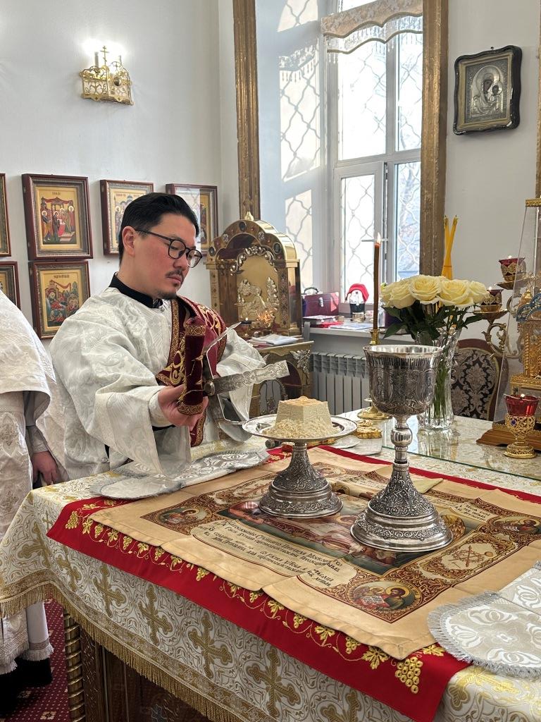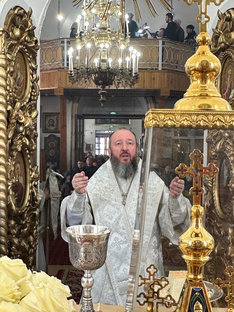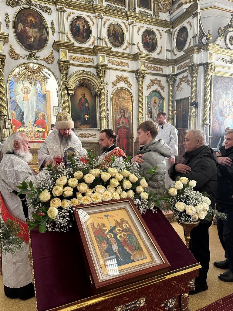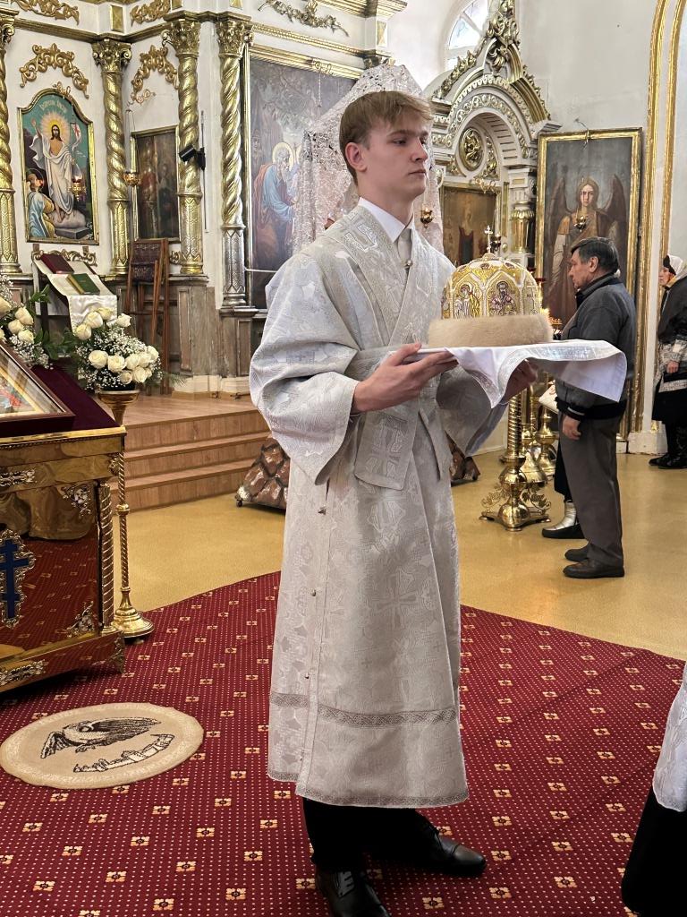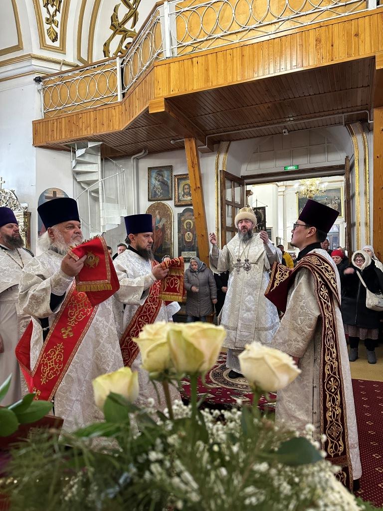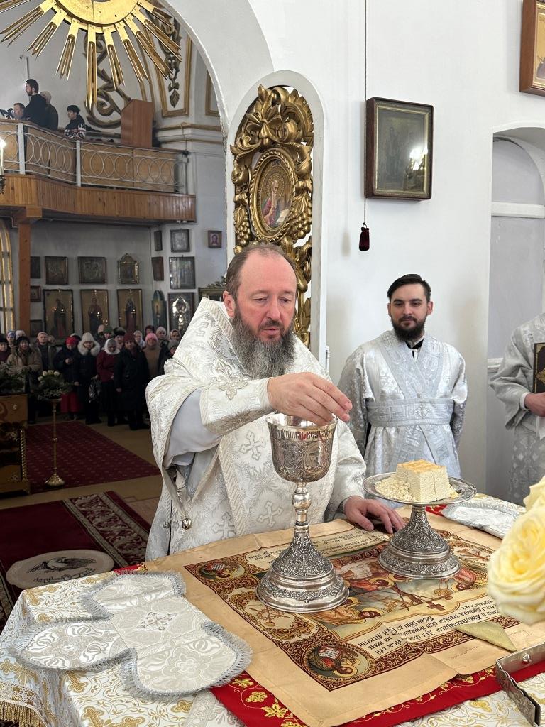 Хор Воскресенского собора под управлением регента Ю. Хохряковой исполнял песнопения Божественной Литургии. За богослужением молились прихожане Воскресенского собора, преподаватели и воспитанники приходской воскресной школы, представители казачьих организаций. Перед причастием мирян проповедовал протоиерей Петр Хонин.