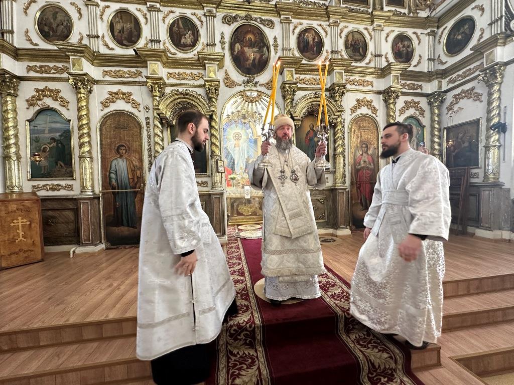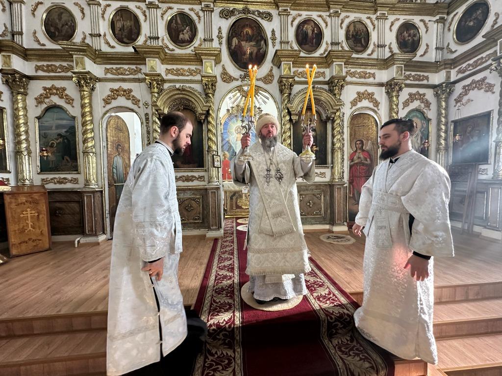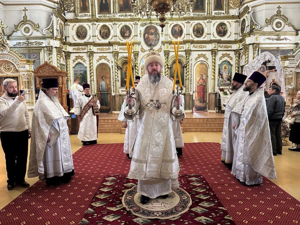 Высокопреосвященнейший архиепископ Усть-Каменогорский и Семипалатинский Амфилохий возглавил служение Божественной Литургии святителя Иоанна Златоуста в Воскресенском кафедральном соборе города Семипалатинска. Архипастырю сослужили: благочинный Семипалатинского церковного округа протоиерей Роман Сычук, клирики Воскресенского собора протоиерей Петр Хонин, протоиерей Александр Юркин; протодиакон Андрей Дудник, протодиакон Николай Белоконь, секретарь епархии диакон Илия Кван.