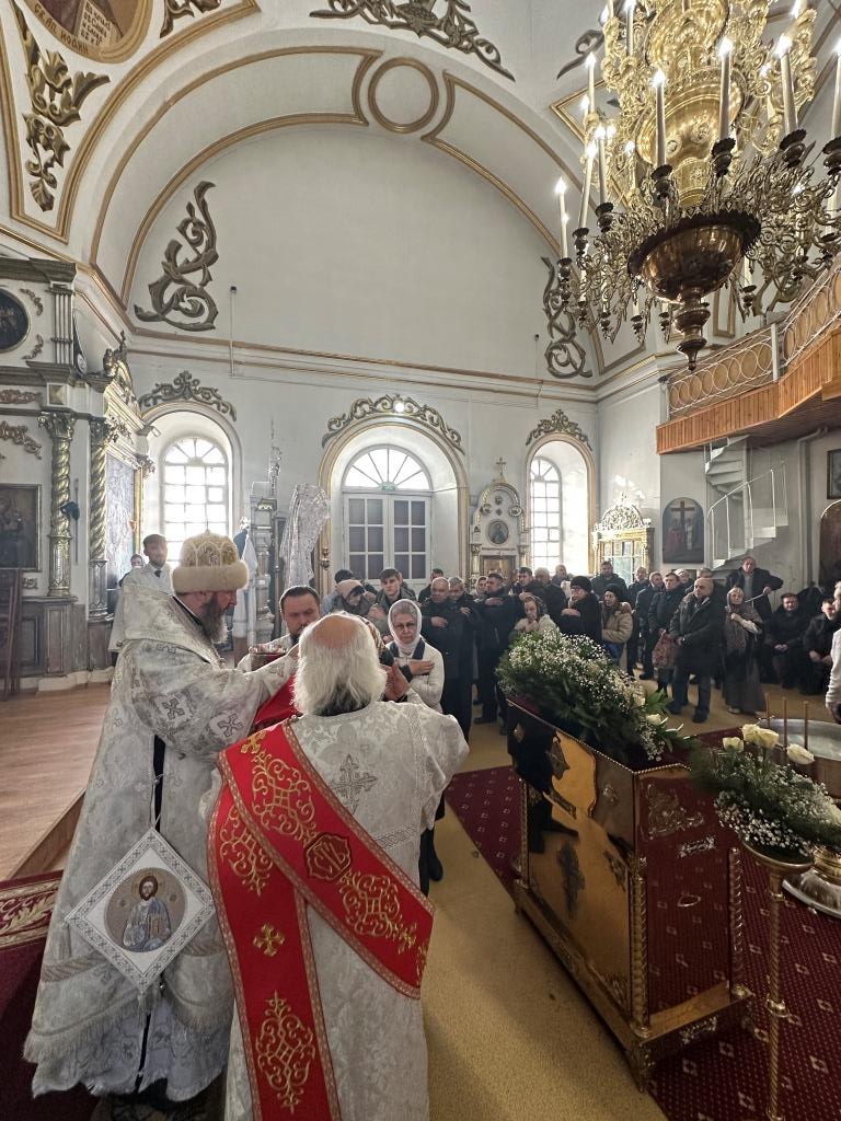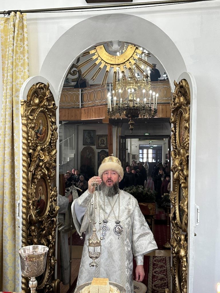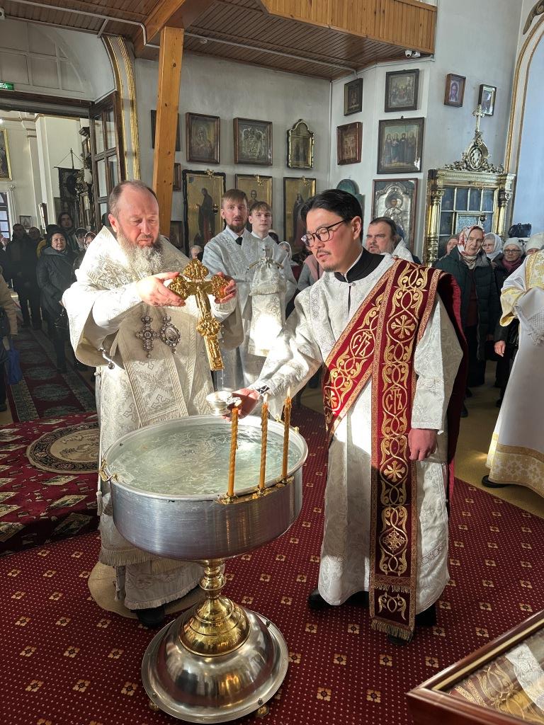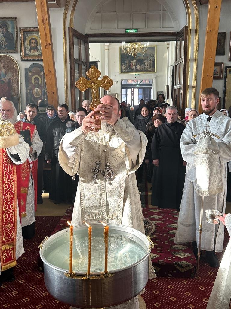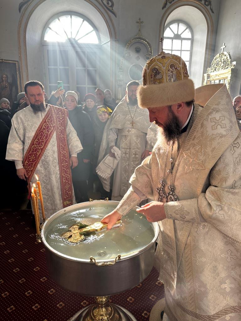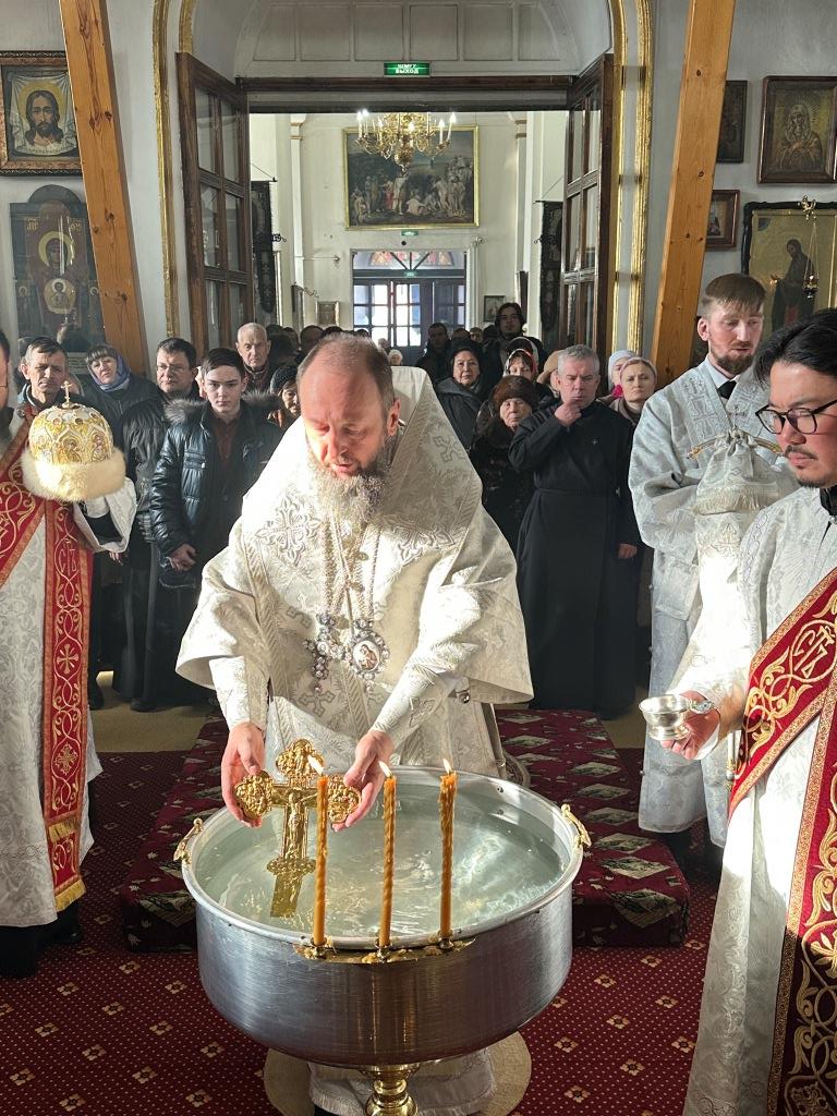 По церковному уставу, после Божественной Литургии была совершена великая вечерня с чтением праздничных паремий; затем архиепископ Амфилохий возглавил чин великого освящения воды. Завершая праздничное богослужение, Высокопреосвященнейший Владыка поздравил духовенство и народ Божий с праздником Крещения Господня и произнес слова поучения.