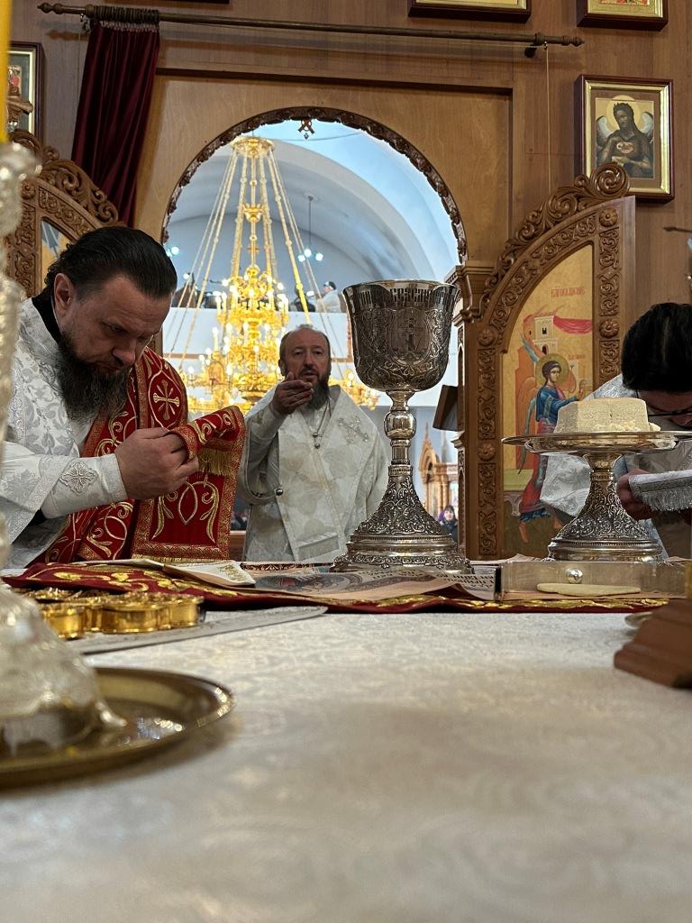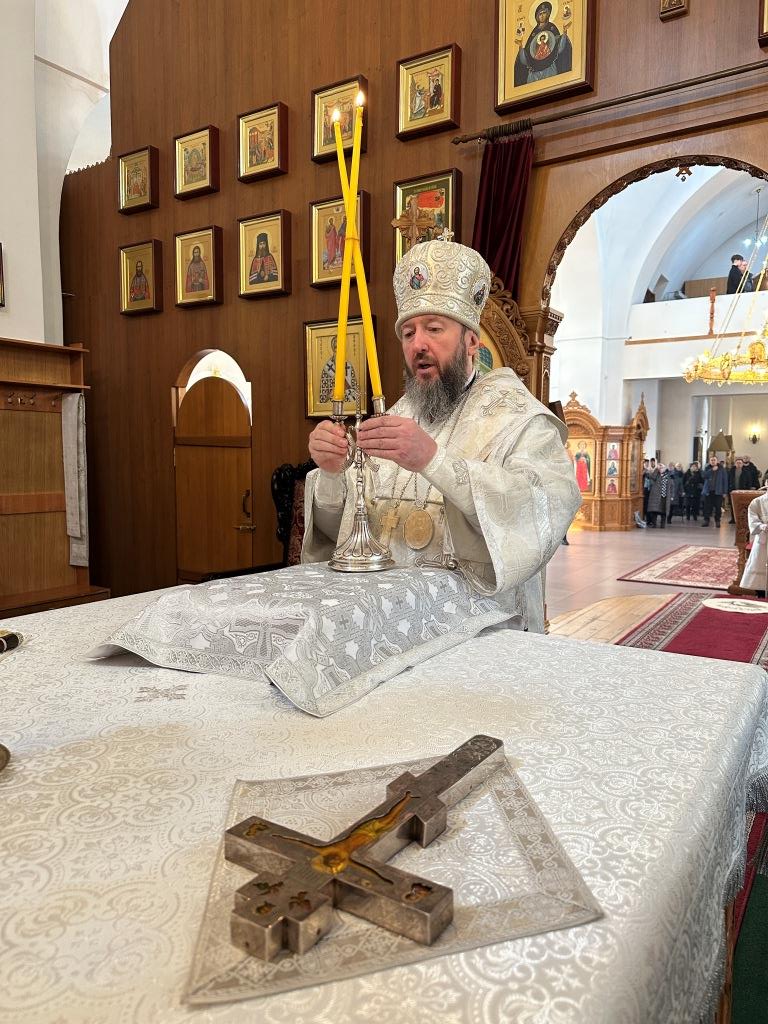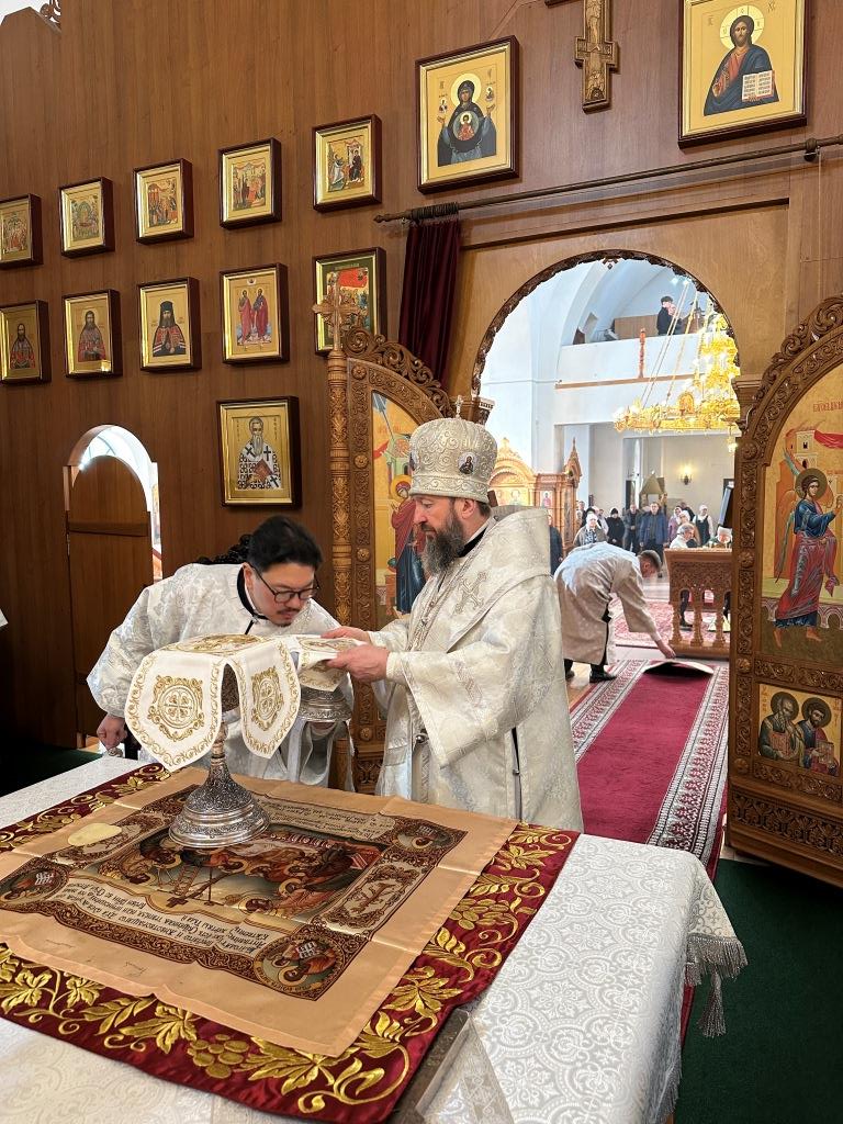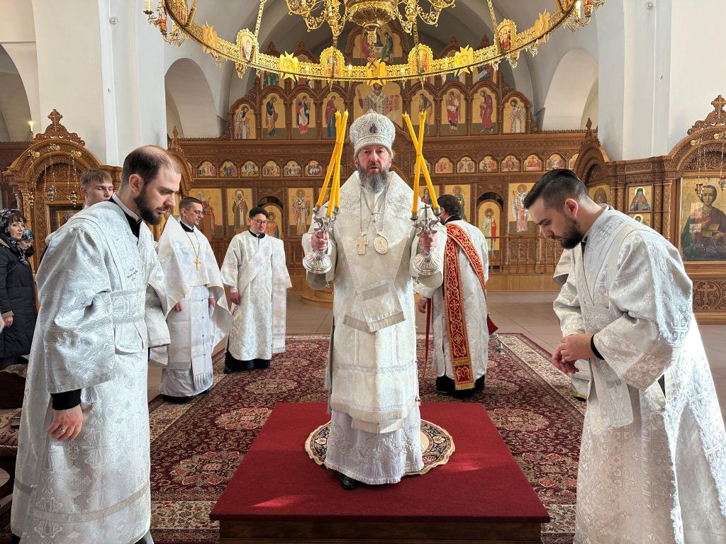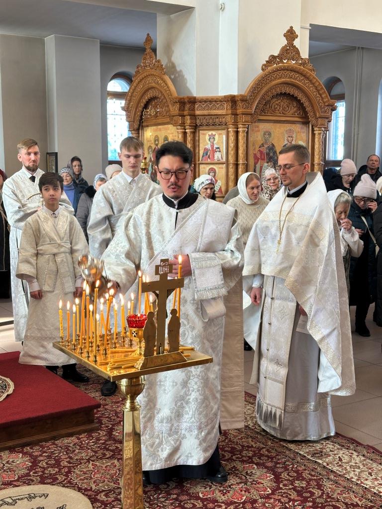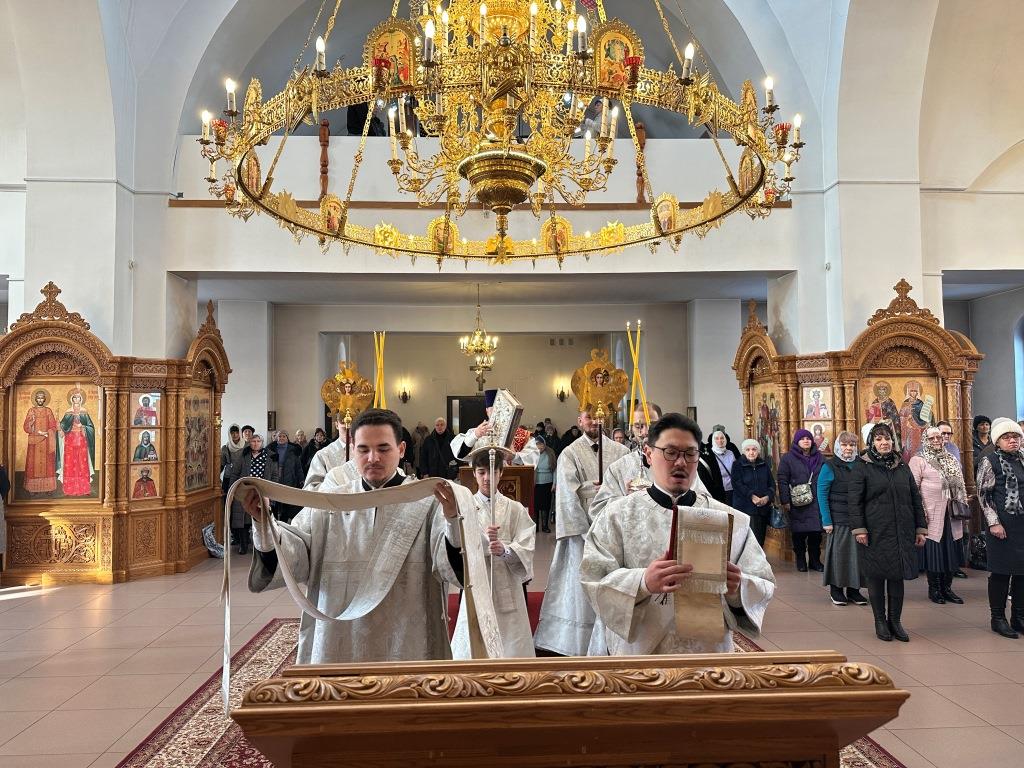 В субботу мясопустную Высокопреосвященнейший архиепископ Усть-Каменогорский и Семипалатинский Амфилохий совершил Божественную Литургию святителя Иоанна Златоуста в Андреевском кафедральном соборе города Усть-Каменогорска. Владыке архиепископу сослужили: ключарь кафедрального собора иеромонах Никодим (Авдеев), клирик собора иерей Константин Дьяков; протодиакон Андрей Дудник, секретарь епархии диакон Илия Кван, диакон Кирилл Рамазанов.
