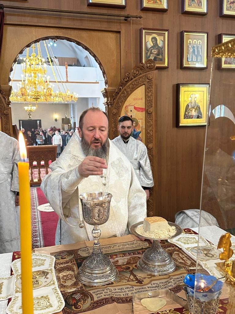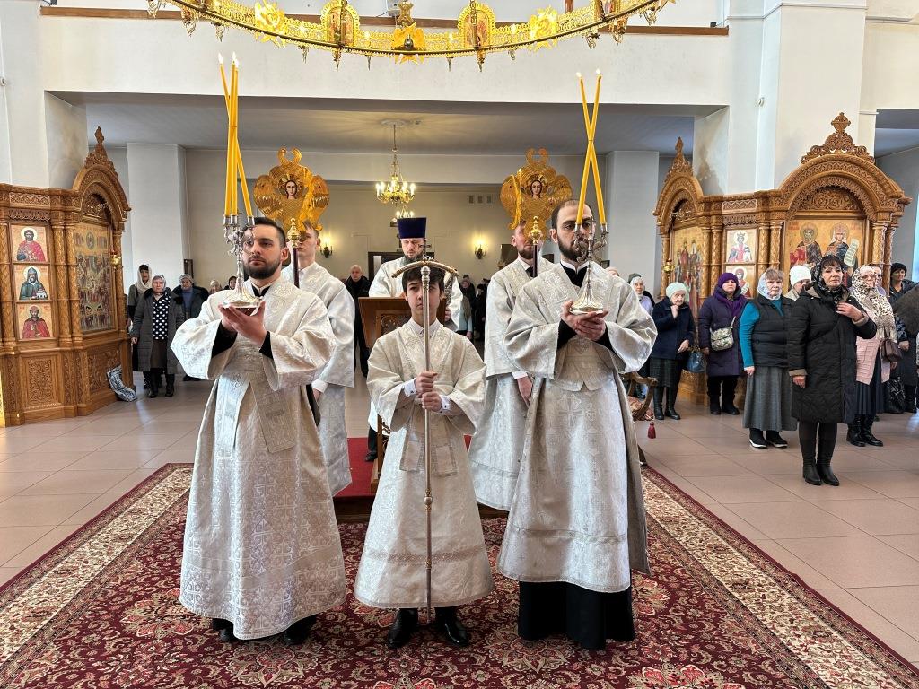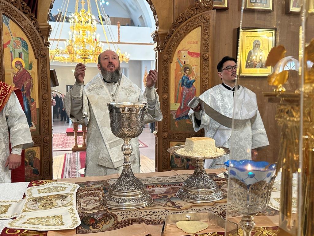 За богослужением молилcись и причащались Христовых Таин прихожане Андреевского собора, насельники Свято-Троицкого мужского монастыря города Усть-Каменогорска, сотрудники епархиального управления. Песнопения Литургии и заупокойной мясопустной субботы исполнял хор под управлением регента Н. Романцовой. На заупокойной ектении сугубо поминались почившие священнослужители Восточного Казахстана, прихожане и благодетели кафедрального собора.