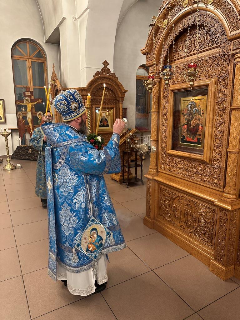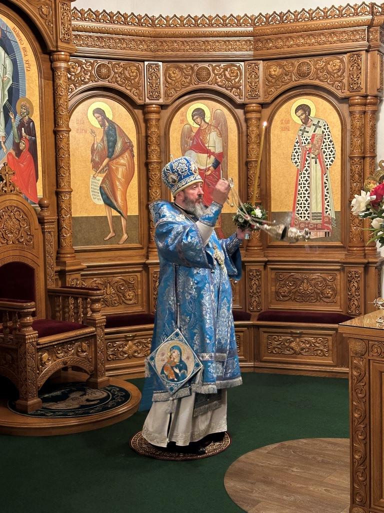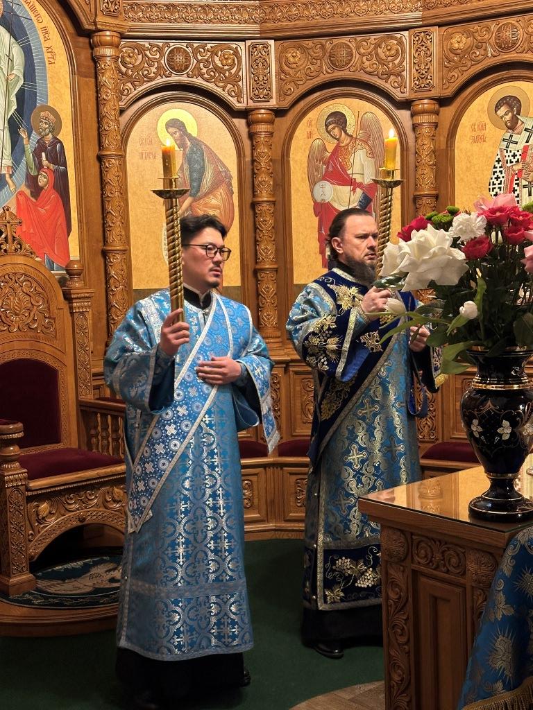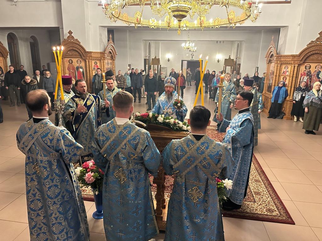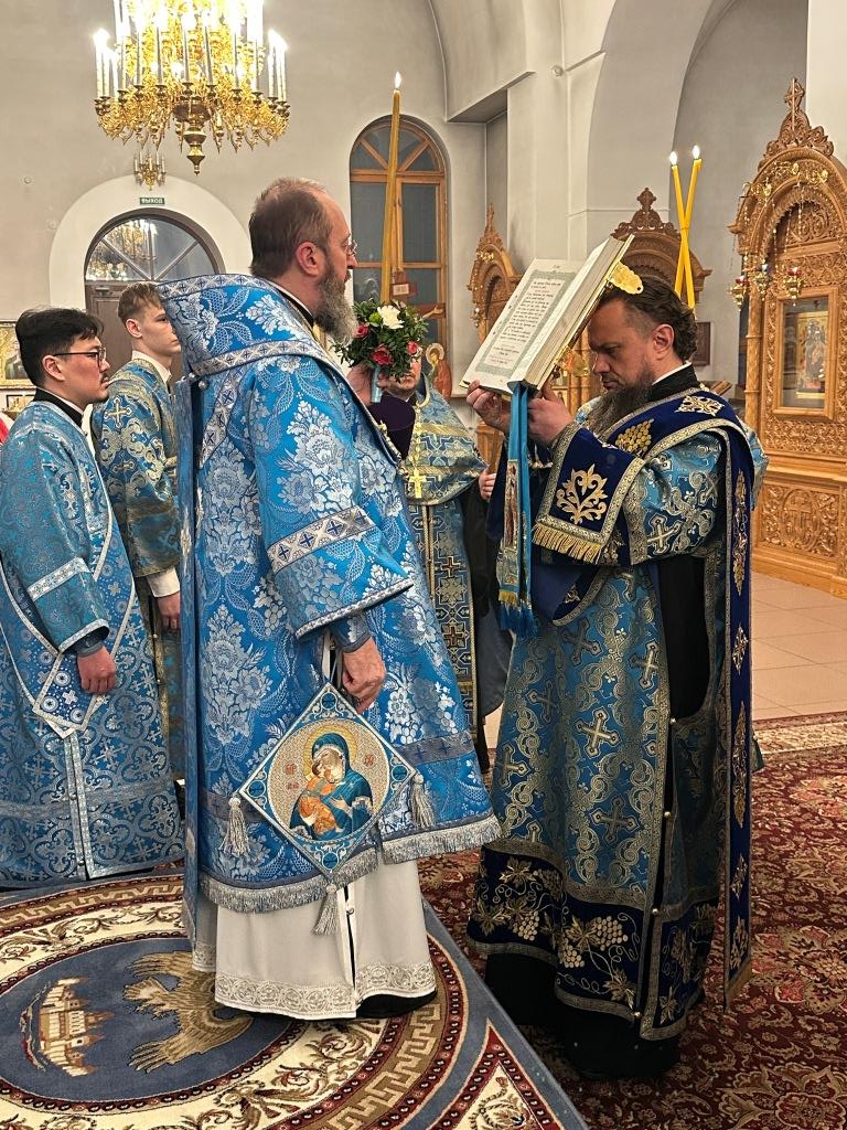 Владыке архиепископу сослужили: ключарь кафедрального собора иеромонах Никодим (Авдеев), клирики собора иерей Роман Подрезов, иерей Константин Дьяков; протодиакон Андрей Дудник, секретарь епархии диакон Илия Кван, диакон Кирилл Рамазанов. За праздничным богослужением совершалась лития – сугубо моление с освящением хлеба, пшеницы, вина и елея.