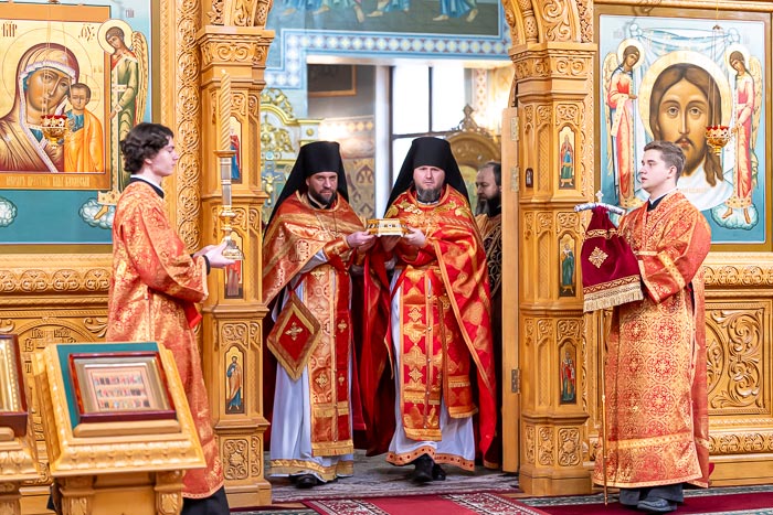 В завершение Литургии состоялось славление празднику Сретения Господня и мученице Агафии Панормской перед образом святой и ковчегом с частицей ее честных мощей.