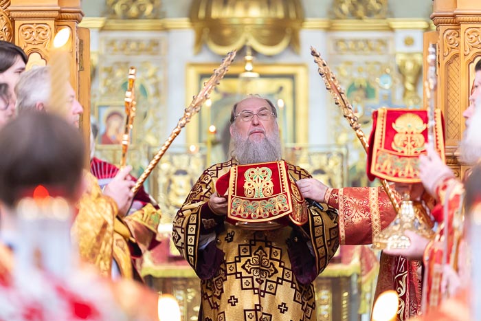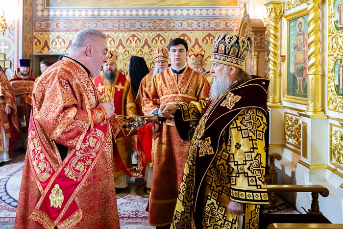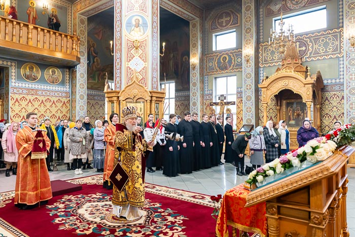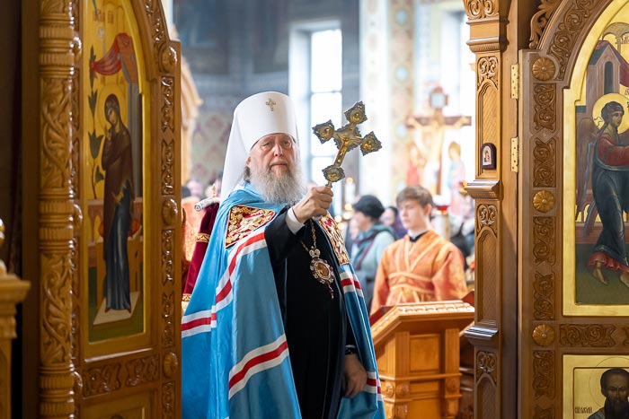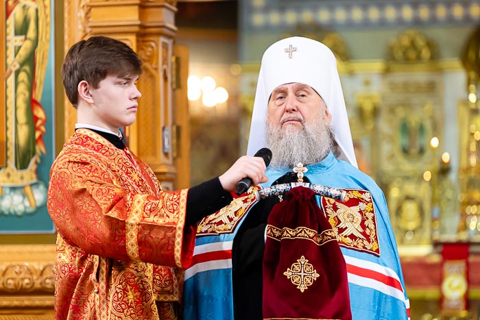 По окончании богослужения митрополит Александр сердечно поблагодарил иерархов, священнослужителей, монашествующих и всех участников торжества за общую молитву, поздравил собравшихся с празднованием в честь мученицы Агафии Панормской и обратился с проповедью.