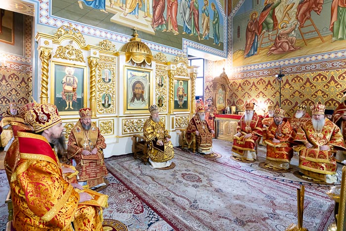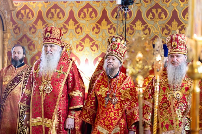 Предстоятелю Православной Церкви Казахстана сослужили: архиепископ Павлодарский и Экибастузский Варнава, архиепископ Усть-Каменогорский и Семипалатинский Амфилохий, архиепископ Кокшетауский и Акмолинский Варсонофий, архиепископ Петропавловский и Булаевский Владимир, управляющий делами Православной Церкви Казахстана епископ Каскеленский Геннадий, викарий Астанайской епархии епископ Талдыкорганский Клавдиан, епископ Чимкентский и Туркестанский Хрисанф, епископ Уральский и Атырауский Вианор; благочинный приходов Южной столицы, настоятель Никольского собора протоиерей Валерий Захаров; настоятель алма-атинского храма в честь иконы Божией Матери «Всех скорбящих Радость» протоиерей Евгений Воробьев, архимандрит Иосиф (Еременко); ректор Алма-Атинской духовной семинарии, руководитель информационно-издательского отдела Митрополичьего округа протоиерей Евгений Иванов, настоятель Параскевинской церкви и Александро-Невского храма протоиерей Иоанн Лопатин, настоятель Богоявленского храма протоиерей Валерий Шаврин, ключарь Вознесенского кафедрального собора, руководитель отдела Митрополичьего округа по связям с общественностью протоиерей Александр Суворов; благочинный Илийского церковного округа протоиерей Александр Зырянов, ключарь Петропавловского храма протоиерей Кирилл Шкляр, секретарь Костанайской епархии иеромонах Геннадий (Бурдюжа), настоятели храмов и духовенство Алма-Атинской епархии; священнослужители, прибывшие с гостями-архипастырями; диаконский чин возглавил протодиакон Николай Гринкевич.