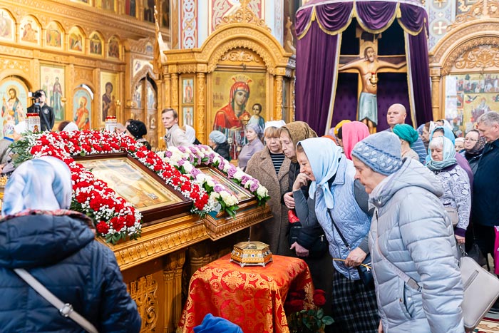 На протяжении всего дня в Софийском соборе совершалось молитвенное поклонение перед ковчегом с мощами угодницы Божией.