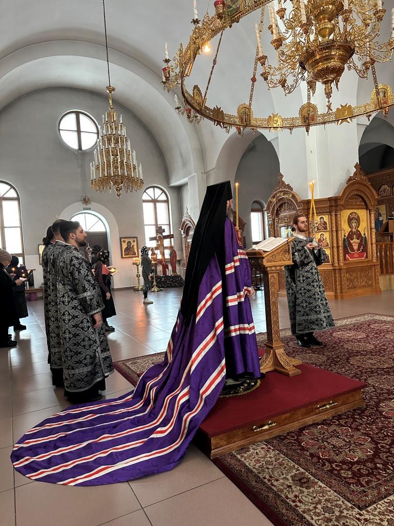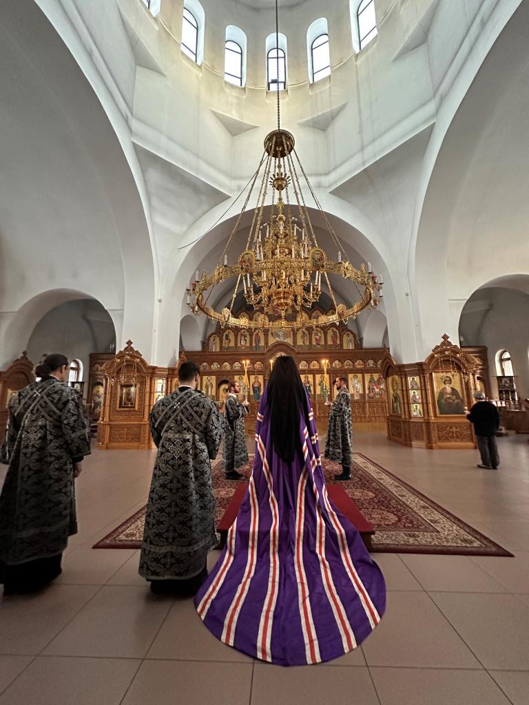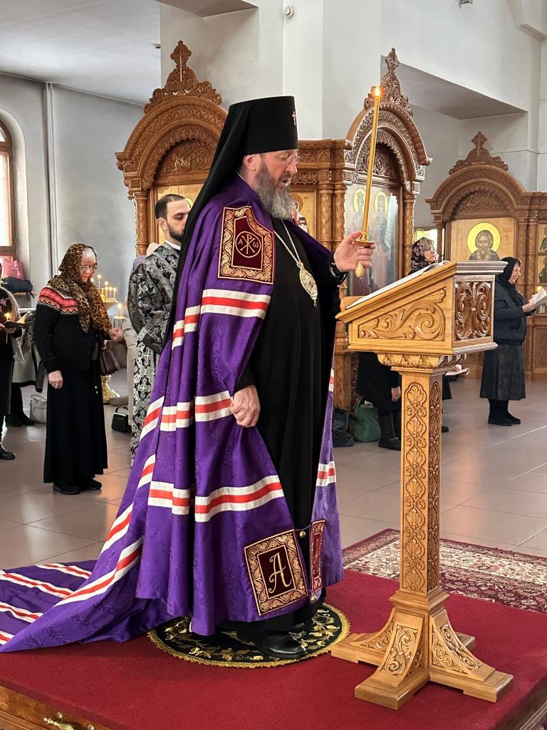 В среду первой седмицы Великого поста архиепископ Усть-Каменогорский и Семипалатинский Амфилохий возглавил служение Великого повечерия с чтением третьей части покаянного канона преподобного Андрея Критского.