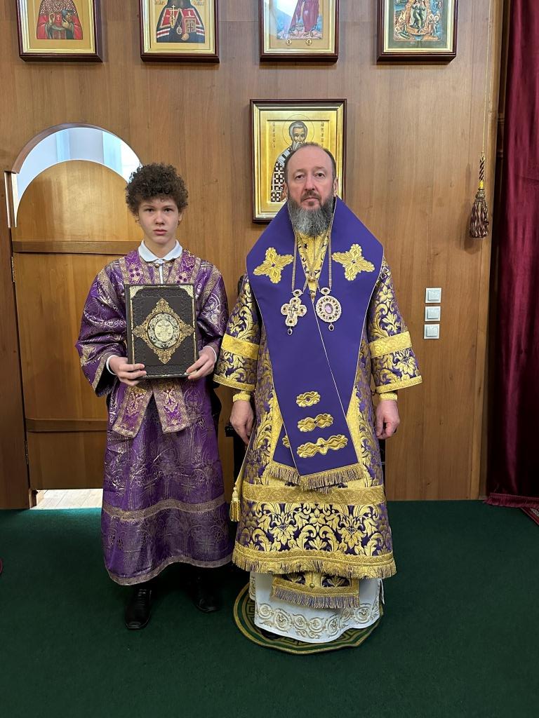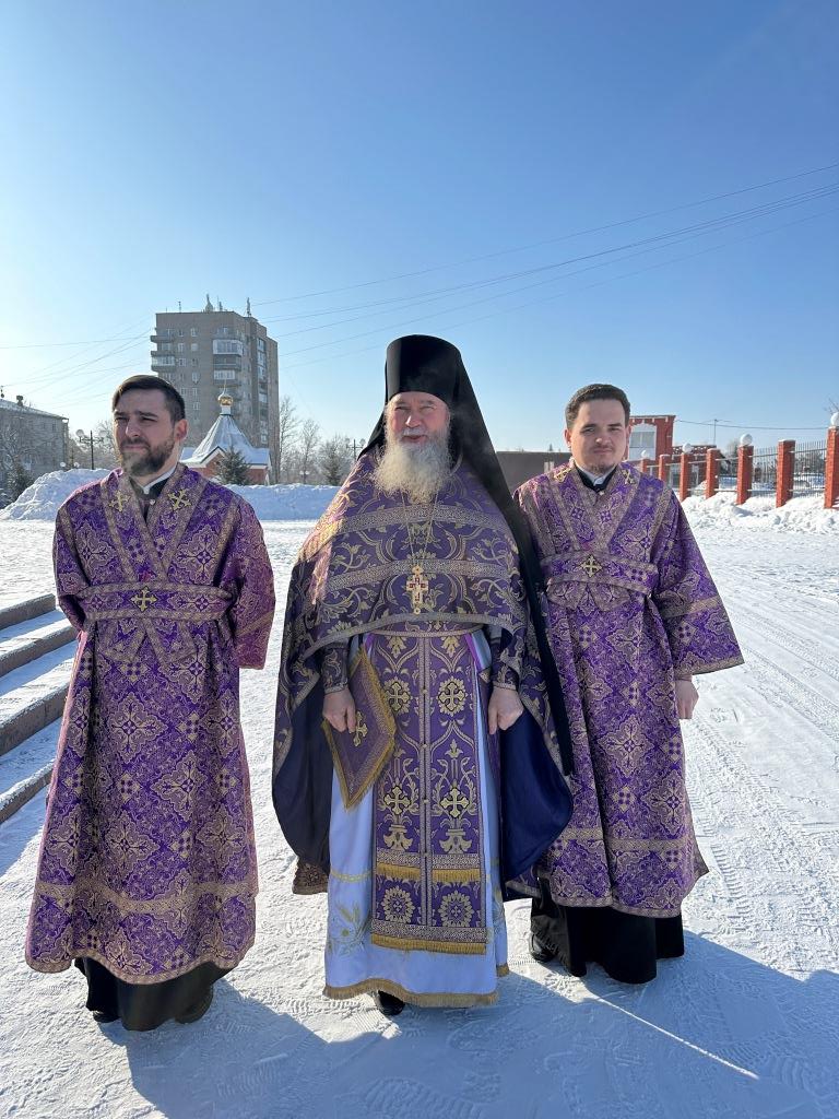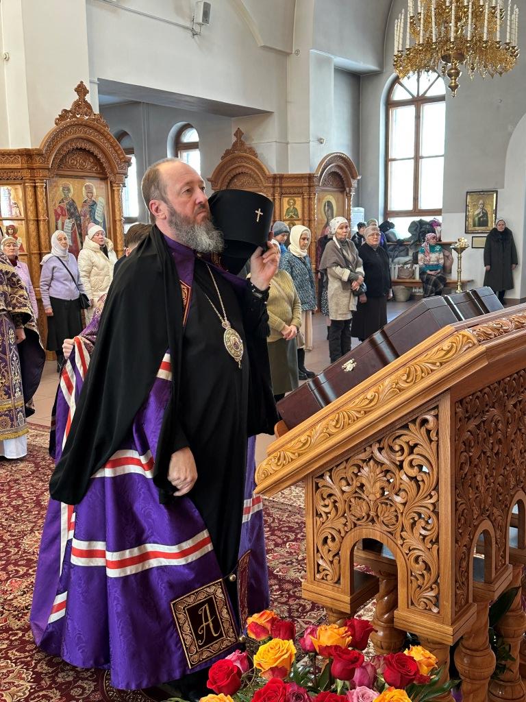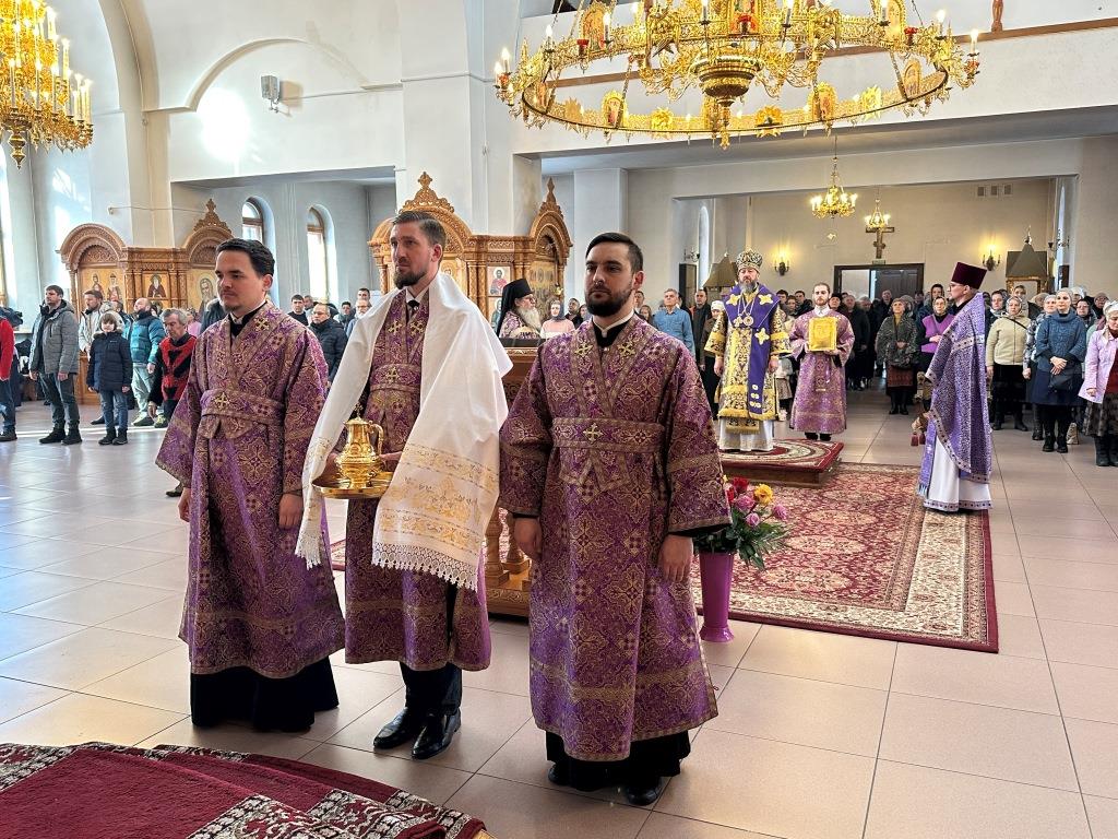 Его Высокопреосвященству сослужили: ключарь Андреевского собора иеромонах Никодим (Авдеев), клирики собора иерей Константин Дьяков, иеромонах Рафаил (Юстус); протодиакон Андрей Дудник, секретарь епархии диакон Илия Кван, диакон Кирилл Рамазанов.