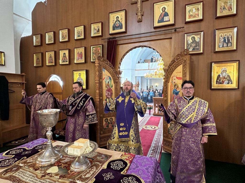 Высокопреосвященнейший архиепископ Усть-Каменогорский и Семипалатинский Амфилохий совершил Божественную литургию святителя Василия Великого и чин Торжества Православия в кафедральном соборном храме святого апостола Андрея Первозванного города Усть-Каменогорска.