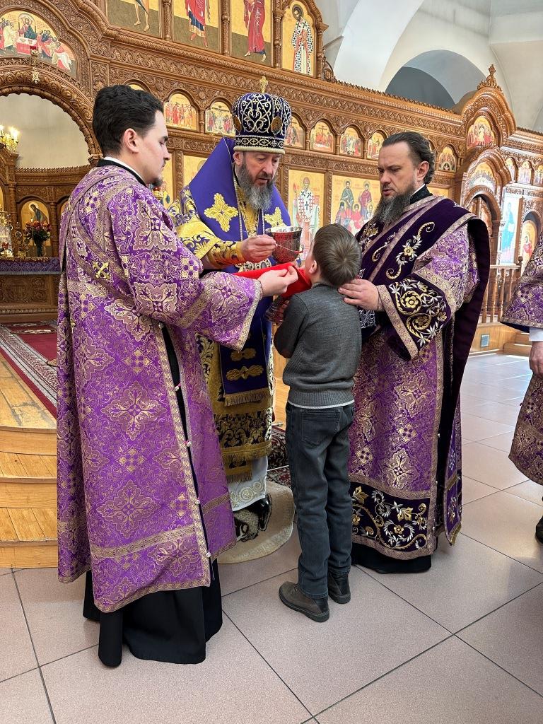 Проповедь перед Причастием произнёс священник Константин Дьяков. По окончании Литургии был совершен чин Торжества Православия и возглашено многолетие Святейшему Патриарху Кириллу, всему освященному собору, и всем, в православии и благочестии подвизающимся, после чего архиепископ Амфилохий обратился к многочисленным верующим со словами проповеди:
