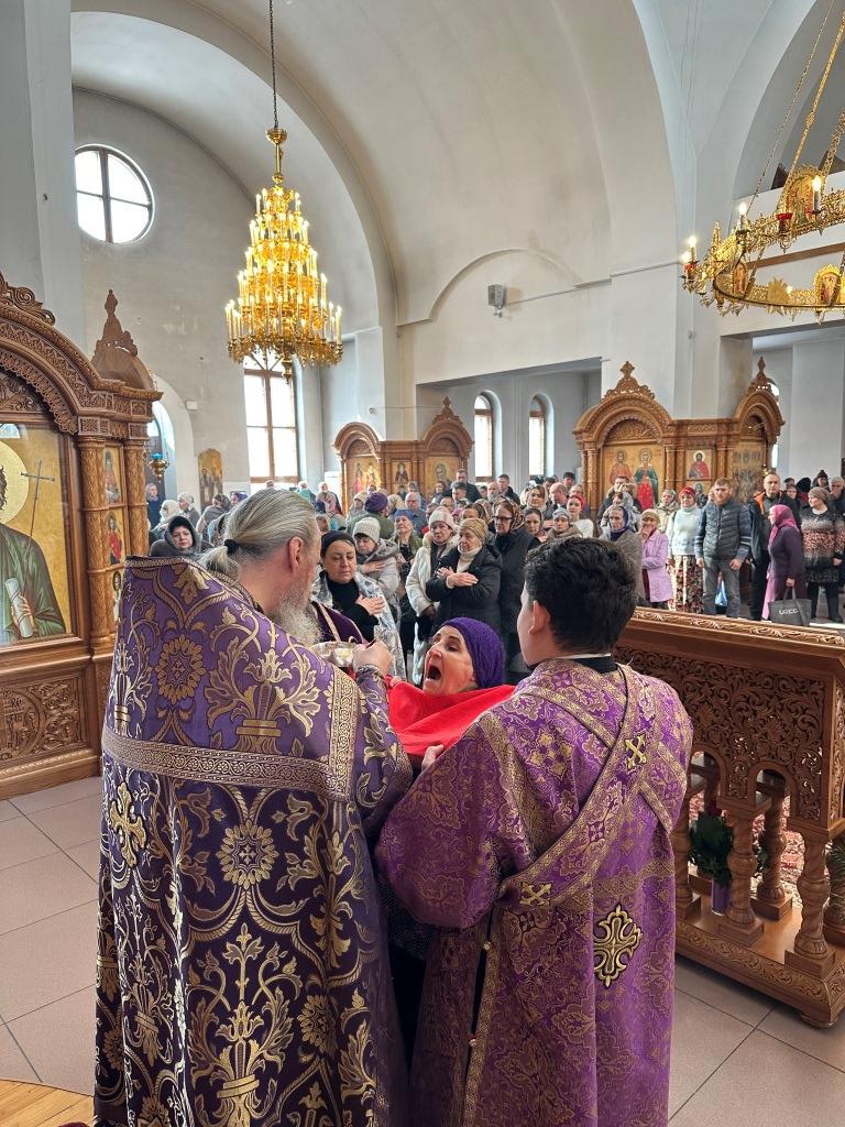 Песнопения Божественной Литургии и праздника Торжества Православия исполнял хор кафедрального собора под управлением Н. Романцовой. За воскресным богослужением молились сотрудники епархиального управления, насельники Свято-Троицкого мужского монастыря, прихожане и паломники. По благочестивой традиции множество православных христиан в первое воскресение Великого поста исповедались и приобщились Святых Христовых Таин.