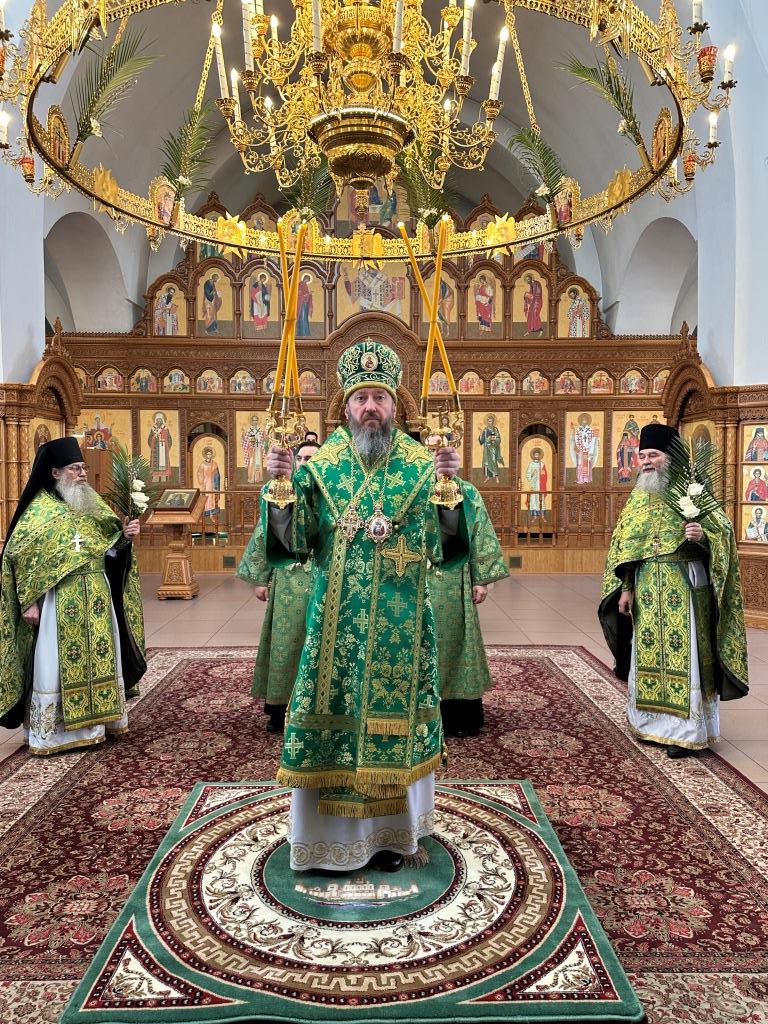 В день двунадесятого праздника Входа Господня в Иерусалим Высокопреосвященнейший архиепископ Усть-Каменогорский и Семипалатинский Амфилохий совершил Божественную Литургию святителя Иоанна Златоуста в Свято-Андреевском кафедральном соборе города Усть-Каменогорска.