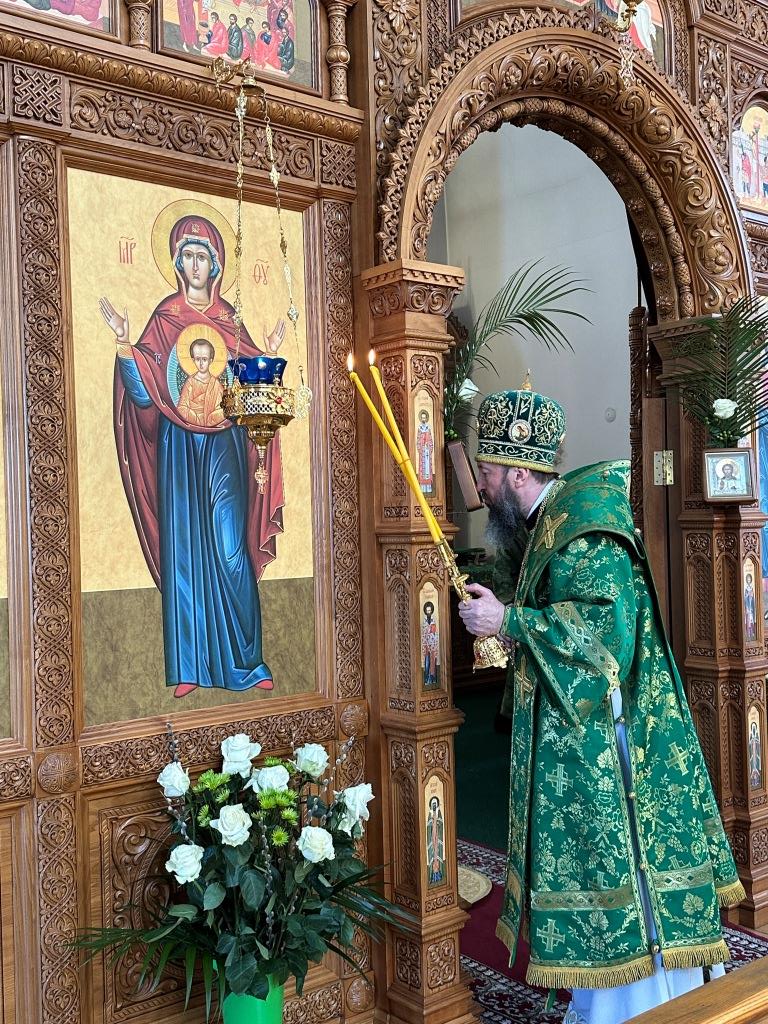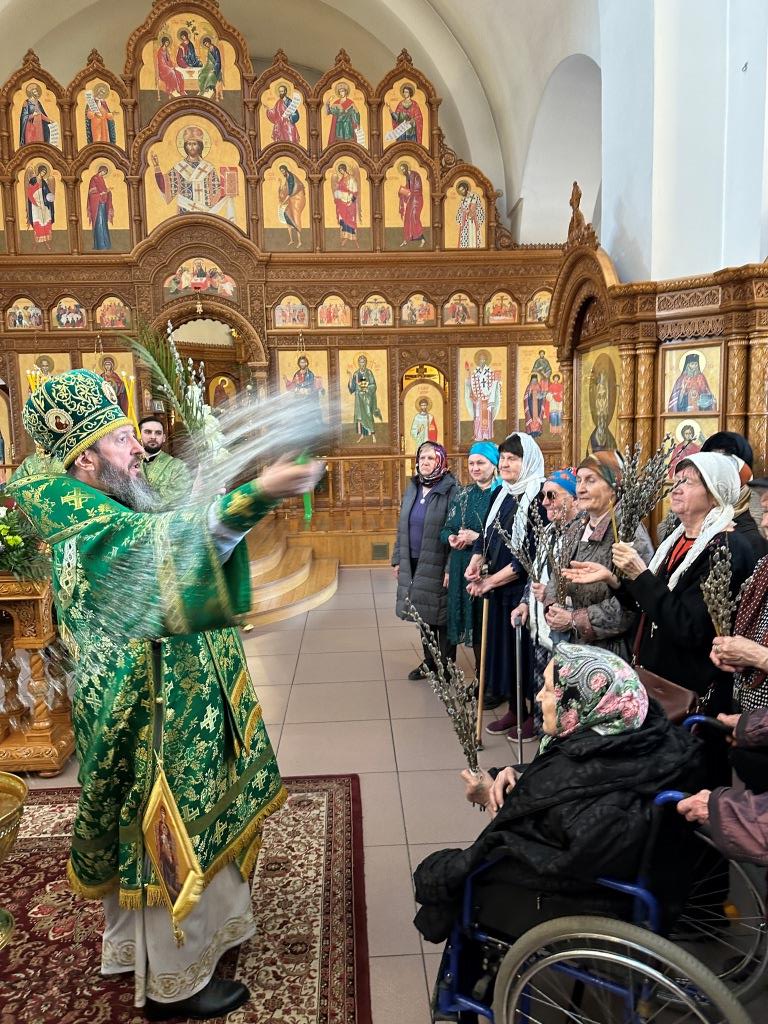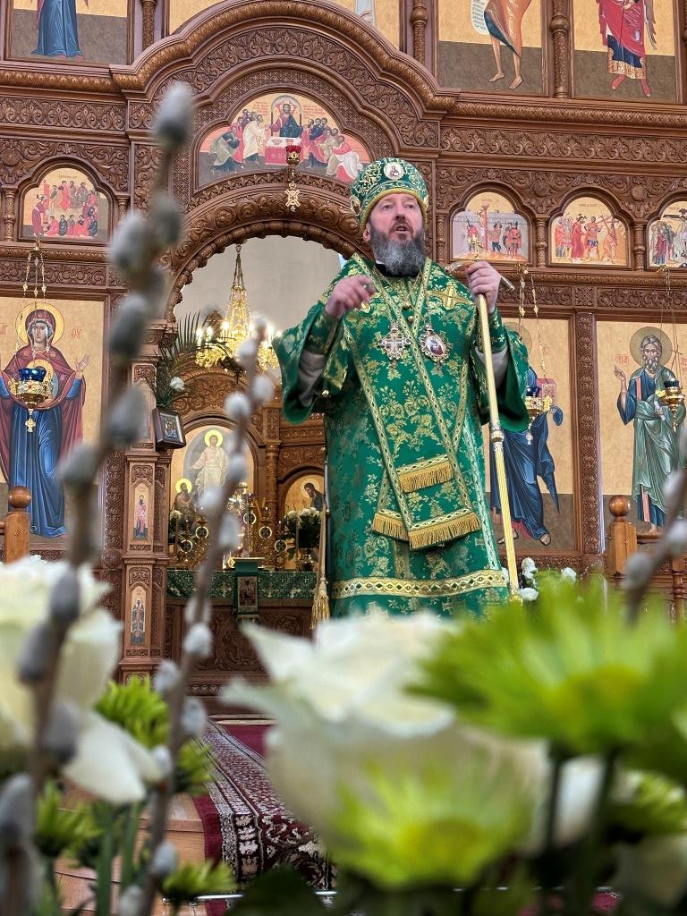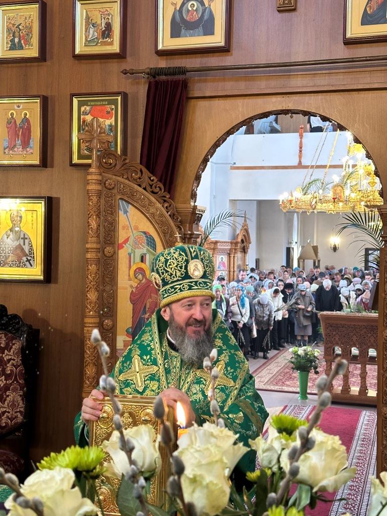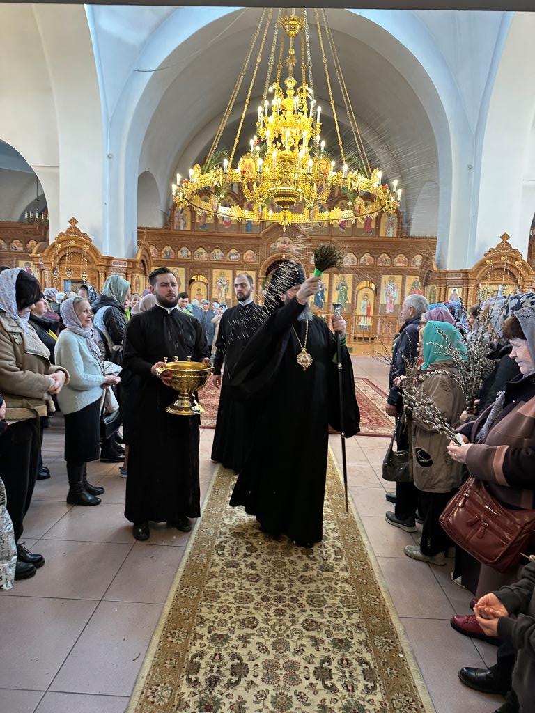 После заамвонной молитвы было совершено освящение ветвей верб, в завершение которого архиепископ Амфилохий обратился к народу Божию со словами Архипастырской проповеди.