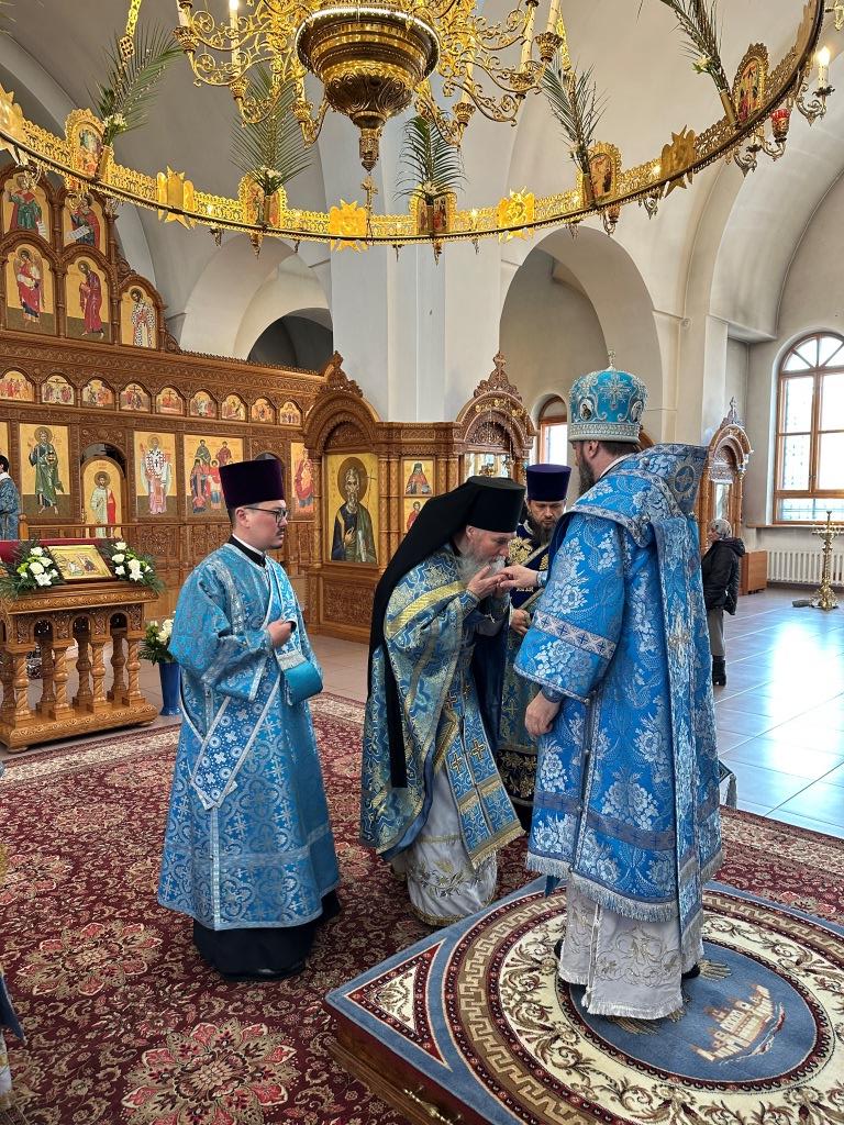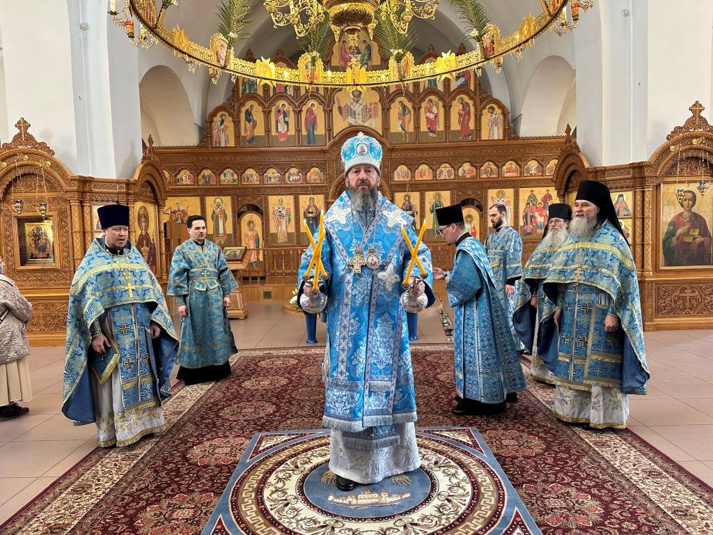 В день праздника Благовещения Пресвятой Богородицы Высокопреосвященнейший архиепископ Амфилохий возглавил служение великой вечерни в соединении с Божественной Литургией святителя Иоанна Златоуста в Андреевском кафедральном соборе города Усть-Каменогорска.