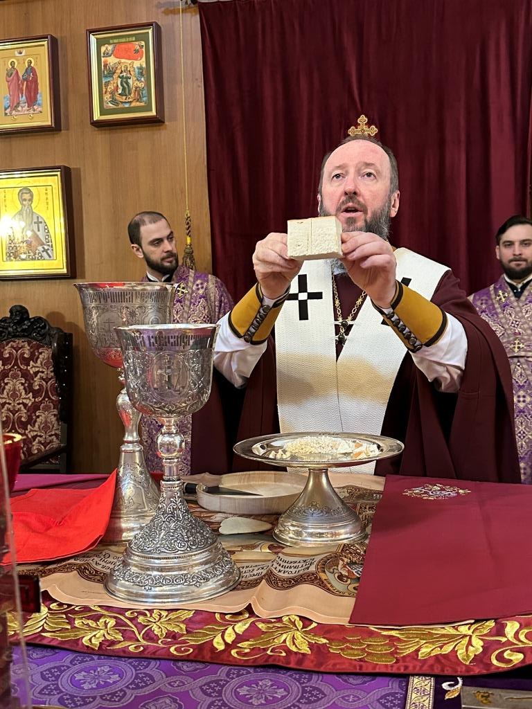 Архиепископ Усть-Каменогорский и Семипалатинский Амфилохий возглавил служение Божественной Литургии святителя Василия Великого в соединении с вечерней в кафедральном соборе в честь апостола Андрея Первозванного столицы Рудного Алтая. Владыке Амфилохию сослужили: ключарь кафедрального собора иеромонах Никодим (Авдеев), клирики собора иерей Роман Подрезов; протодиакон Андрей Дудник, секретарь епархии диакон Илия Кван, диакон Кирилл Рамазанов.