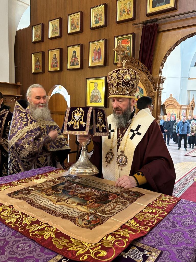 В завершение Литургии архиепископ Амфилохий поздравил причастников с принятием Святых Христовых Таин и обратился к собравшимся с архипастырской проповедью.