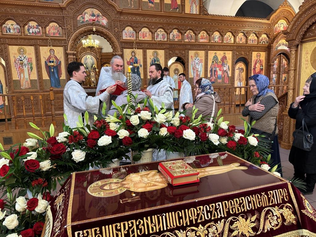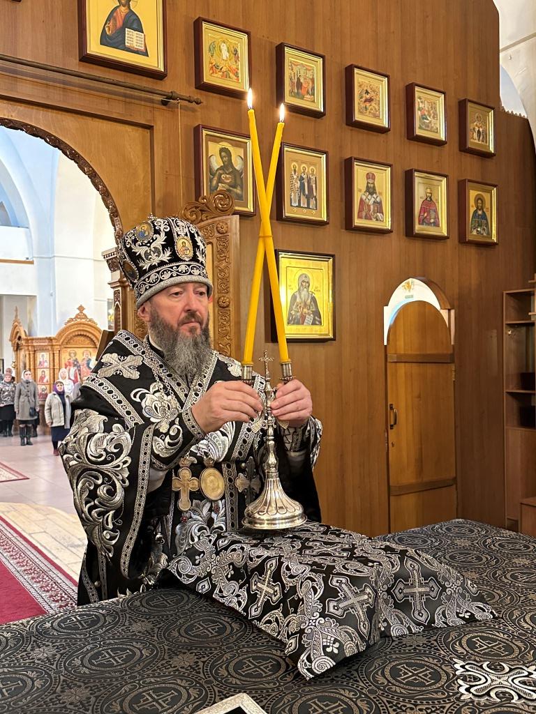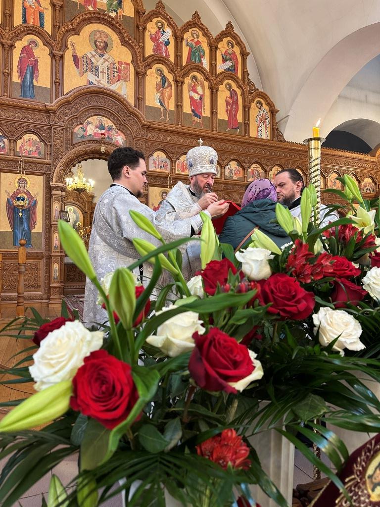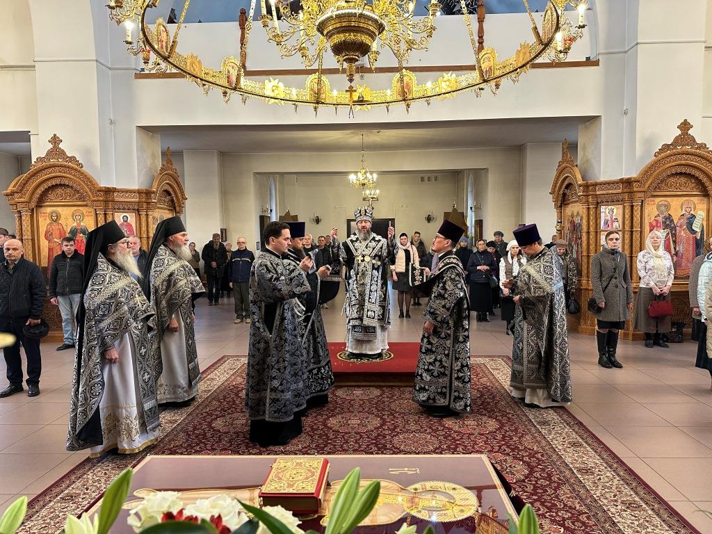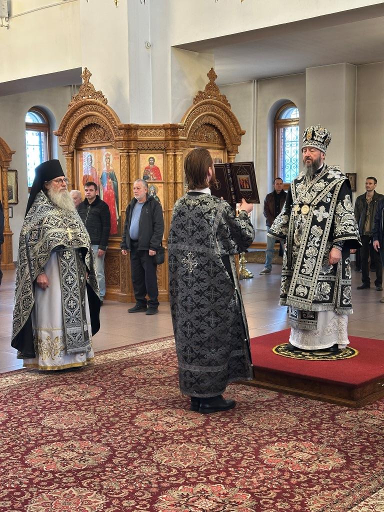 За богослужением были прочитаны паремии, в которых заключаются прообразы страданий, смерти и воскресения Христа и пророчества о наступлении благодатного Царства Господа и славы Новозаветной Церкви. По традиции, после чтения апостольского зачала, Архипастырь и клирики переоблачились, сменив темные великопостные ризы на праздничные белые.