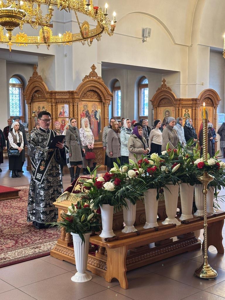 В храме молились и причащались Святых Христовых Таин прихожане кафедрального собора, насельники Свято-Троицкого мужского монастыря, сотрудники епархиального управления. Песнопения Великой Субботы исполнял хор под управлением регента Н. Романцовой.