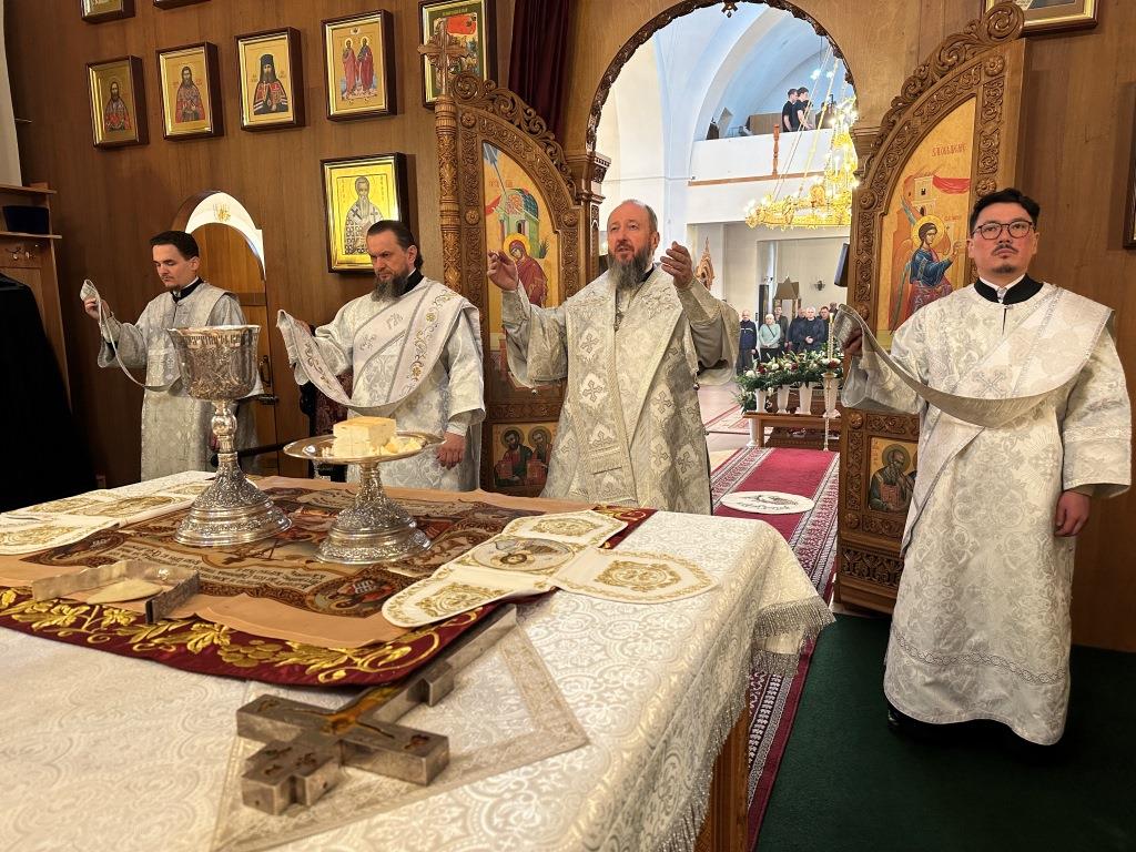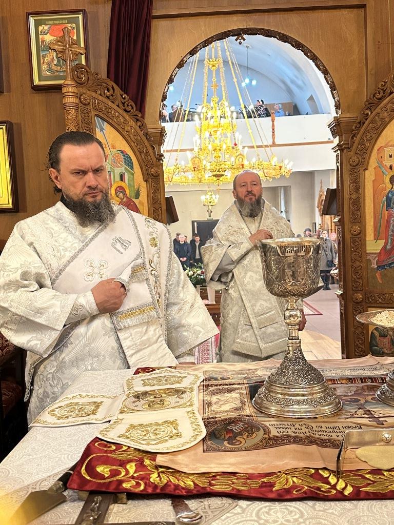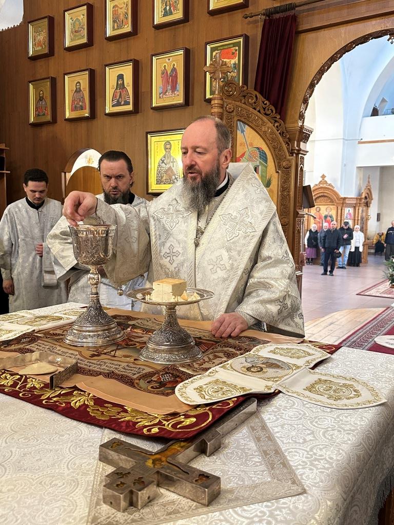После Божественной Литургии была совершена лития с освящением хлеба и вина в память о том, как древние христиане, оставаясь в храме после Литургии до Пасхальной утрени, вкушением освященных хлеба и вина подкрепляли себя на подвиг бдения в грядущую пасхальную ночь.