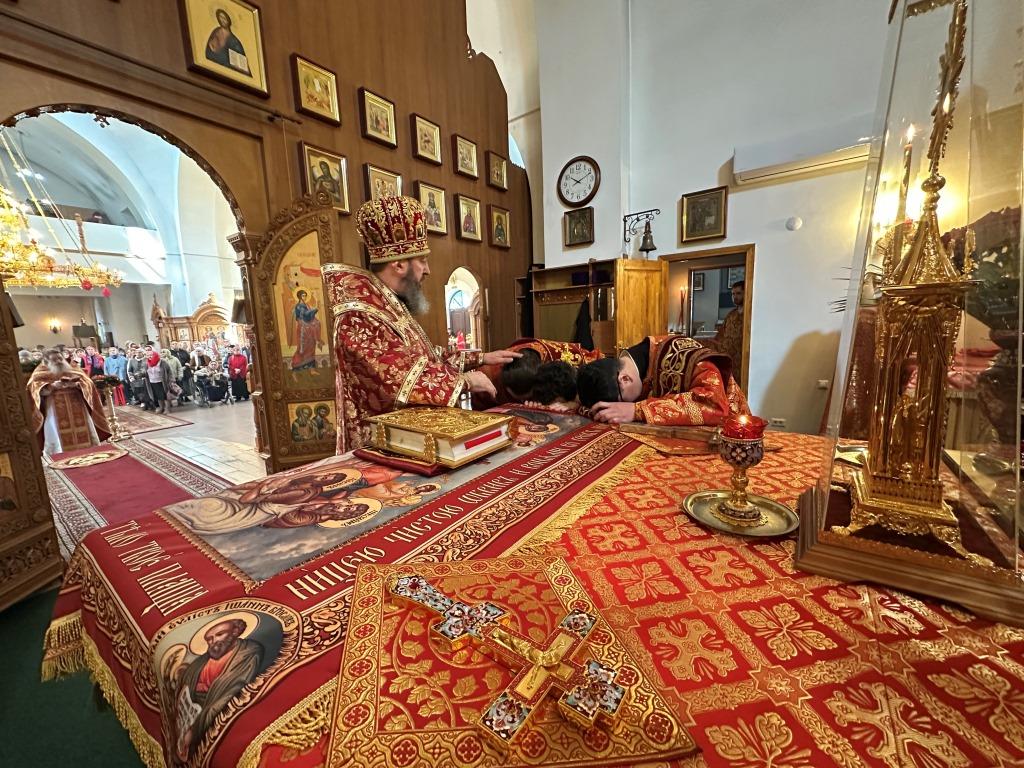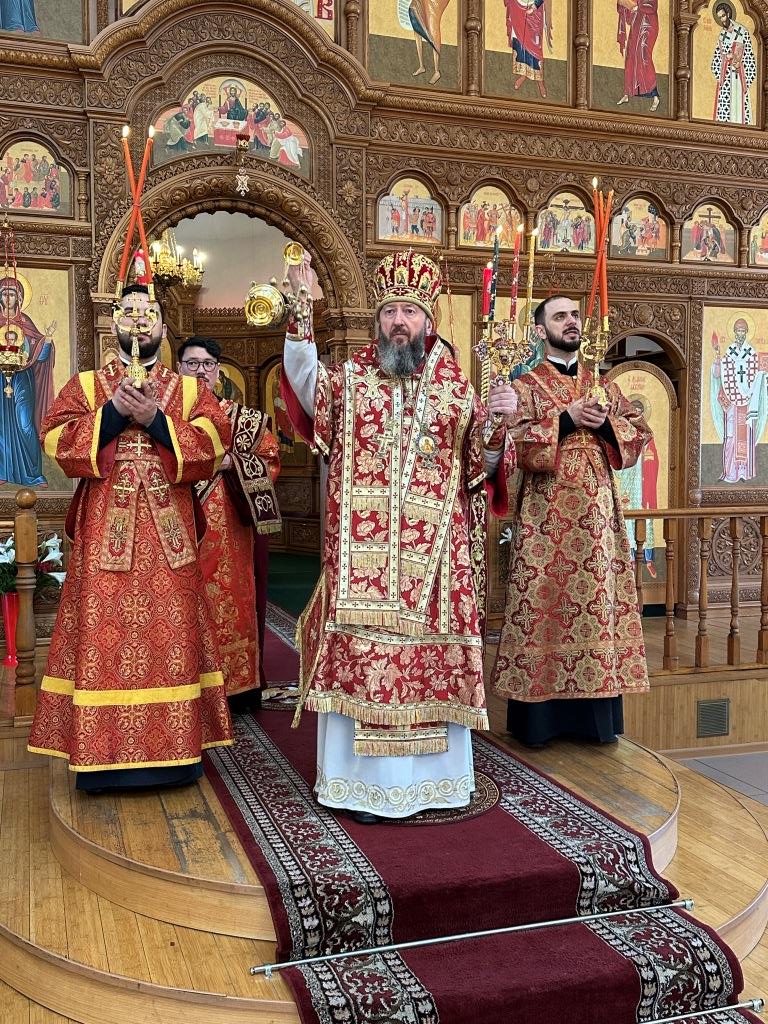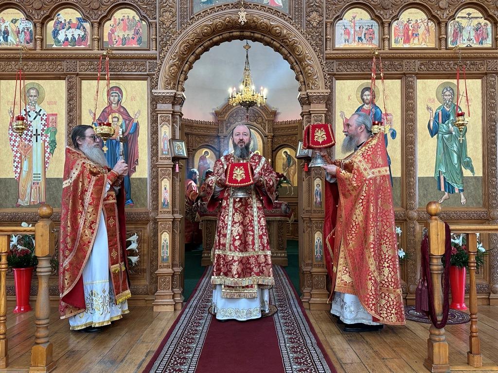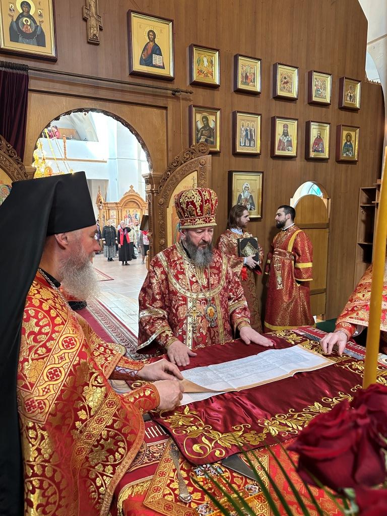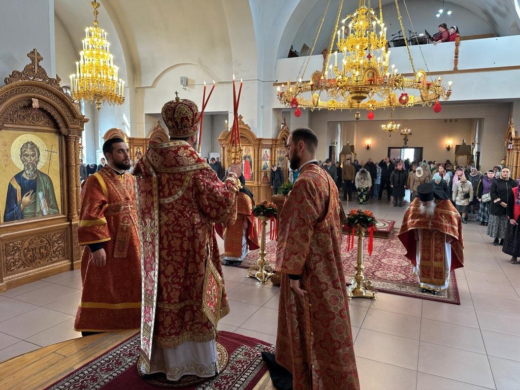 За богослужением  молились насельники Свято-Троицкого мужского монастыря и прихожане кафедрального собора. Песнопения Божественной Литургии и вселенской панихиды исполнял хор кафедрального собора, регент Н. Романцова. На заупокойной ектении сугубо поминались почившие Святейшие православные патриархи, архипастыри и пастыри, усопшие благодетели и прихожане Андреевского кафедрального собора и насельники Свято-Троицкой обители. По окончании Литургии архиепископ Амфилохий обратился к народу Божию с Архипастырским словом: