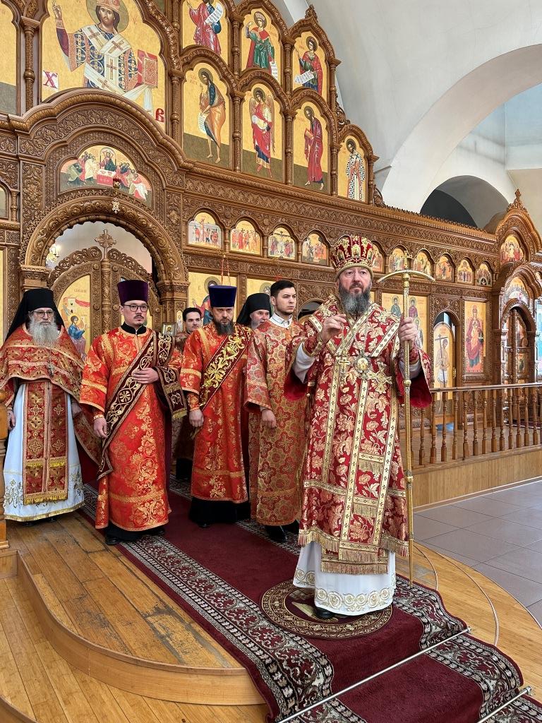Высокопреосвященнейший архиепископ Усть-Каменогорский и Семипалатинский Амфилохий совершил Божественную Литургию святителя Иоанна Златоуста и панихиду в Андреевском кафедральном соборе города Усть-Каменогорска. Иерарху сослужили: ключарь кафедрального собора иеромонах Никодим (Авдеев), иеромонах Рафаил (Юстус), протодиакон Андрей Дудник, секретарь епархии диакон Илия Кван, диакон Кирилл Рамазанов.