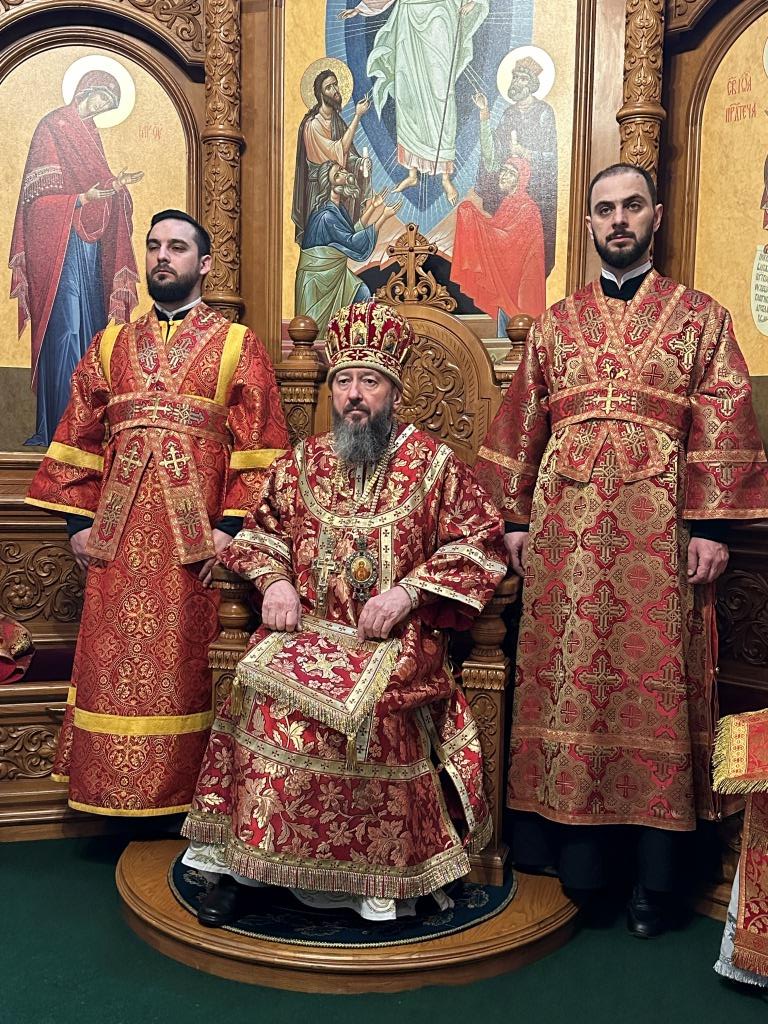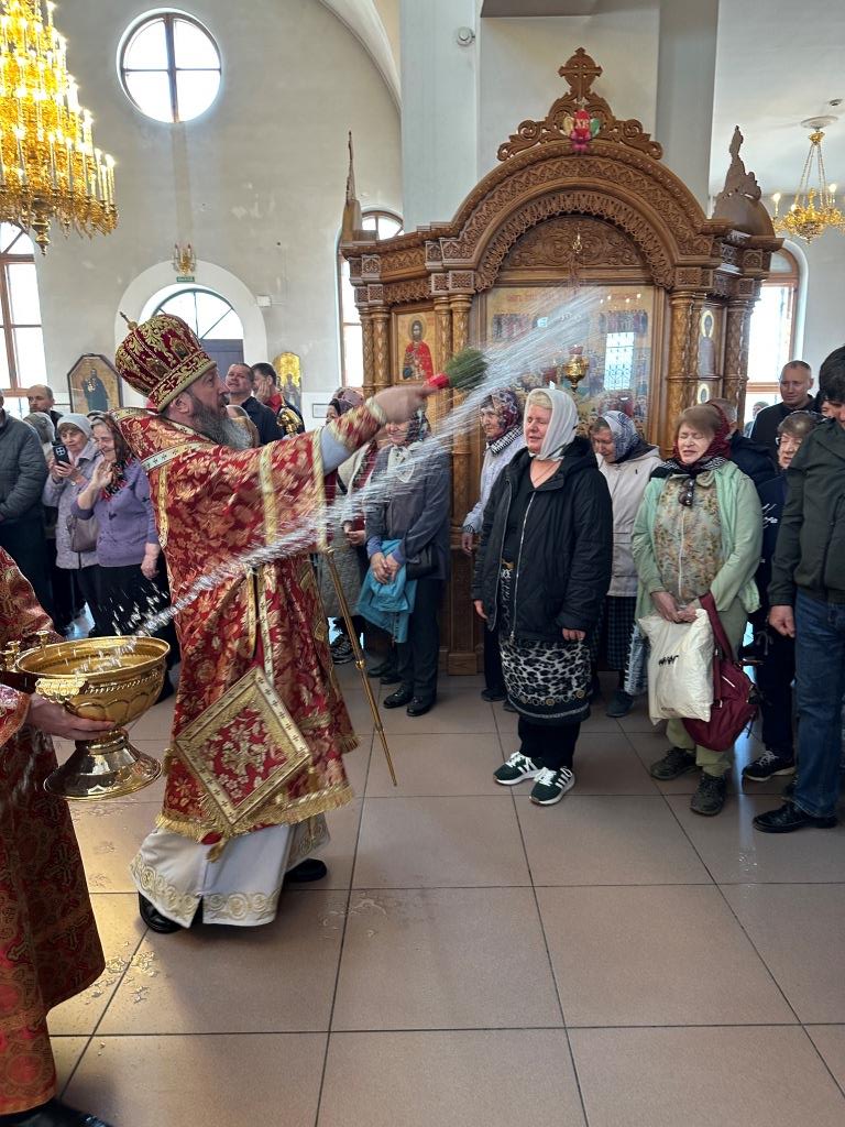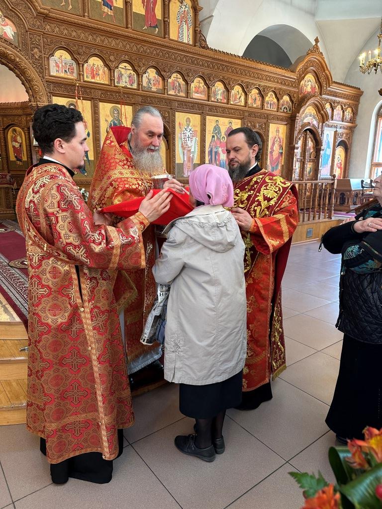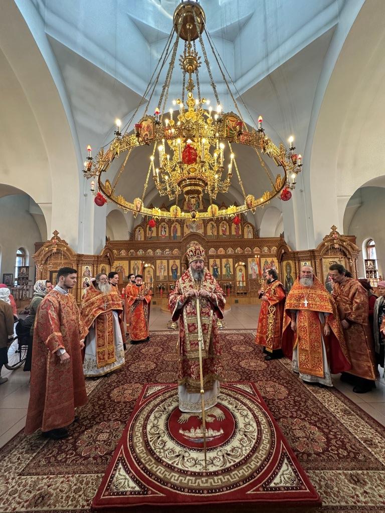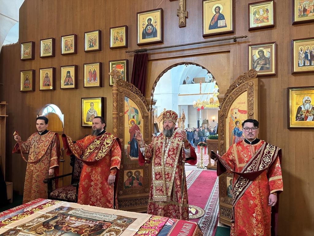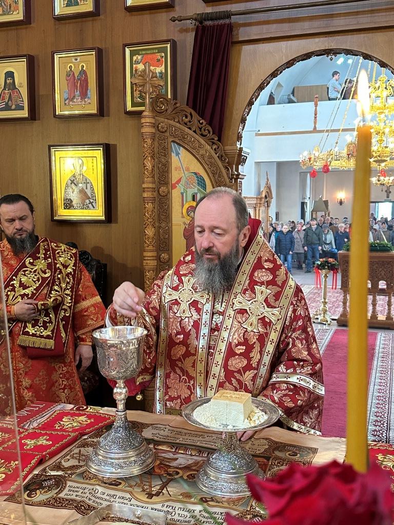 За богослужением молились насельники Свято-Троицкого мужского монастыря и прихожане кафедрального собора. Песнопения Божественной Литургии и вселенской панихиды исполнял хор кафедрального собора, регент Н. Романцова. На заупокойной ектении сугубо поминались почившие Святейшие православные патриархи, архипастыри и пастыри, усопшие благодетели и прихожане Андреевского кафедрального собора и насельники Свято-Троицкой обители. По окончании Литургии архиепископ Амфилохий обратился к народу Божию с Архипастырским словом: