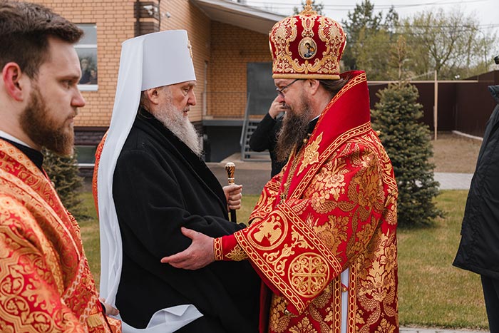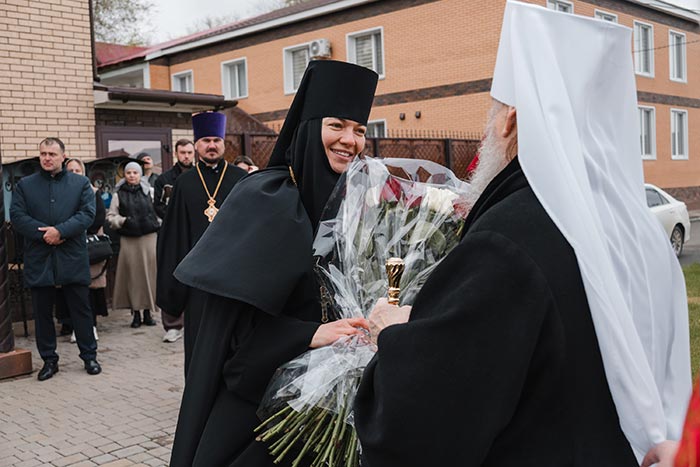 Игумения Варвара поблагодарила митрополита Александра за архипастырский визит и святые молитвы. На память о богослужении матушка преподнесла иерарху митру.
