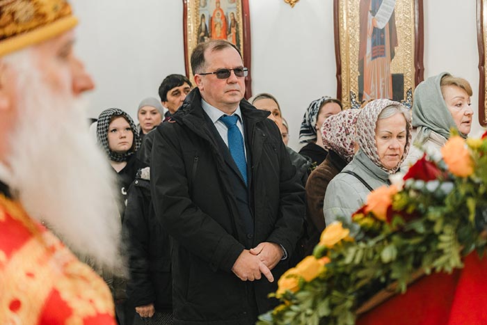 За богослужением молились: секретарь Казахстанского Митрополичьего округа, регент митрополичьего хора, Заслуженный деятель искусств Российской Федерации О.Н. Овчинников; настоятельница Покровского монастыря игумения Варвара (Морозова) с насельницами обители; президент общественного фонда «Eleos-Meirim» В.М. Капсамун; генеральный консул России в Уральске А.В. Грубый; прихожане храмов города; паломники из окрестных населенных пунктов.