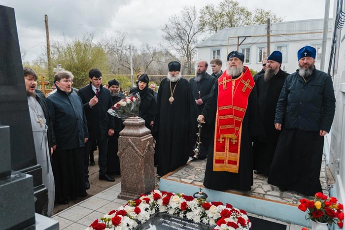 Иерарх погребен у алтаря Спасо-Преображенского храма города Уральска.