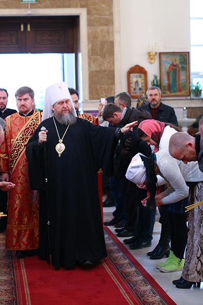 За богослужением молились: настоятельница Астанайского монастыря в честь иконы Божией Матери «Взыскание погибших» игумения Рафаила (Василенко) с насельницами обители; монахи Преображенского афонского монастыря Кутлумуш сопровождающие Древо Креста Христова; Чрезвычайный и Полномочный Посол Российской Федерации в Республике Казахстан М.Н. Бочарников; сотрудники дипломатических миссий иностранных государств, аккредитованных в Астане; преподаватели и воспитанники частного детского дома «Светоч» с директором приюта Л.В. Соловьевой; сотрудники Астанайского епархиального управления; члены Астанайского молодежного православного движения; учащиеся центральной воскресной школы столицы; многочисленные паломники из городов и сел Акмолинской области.